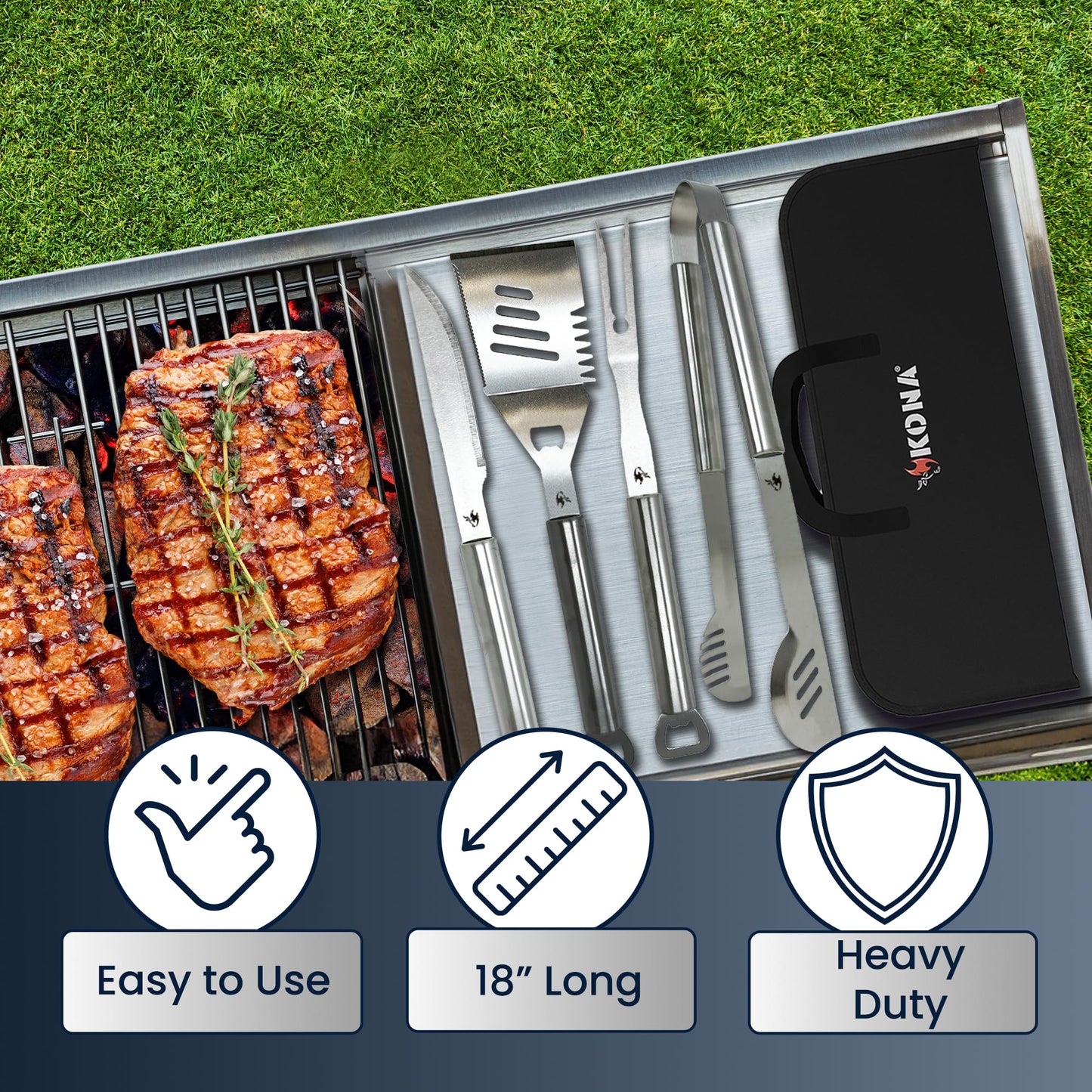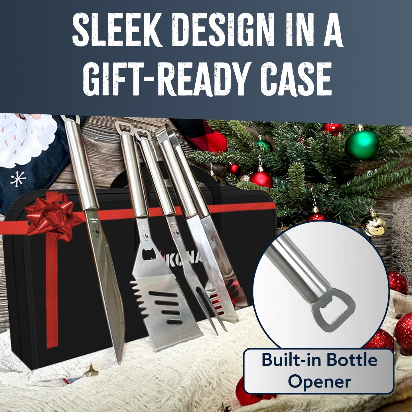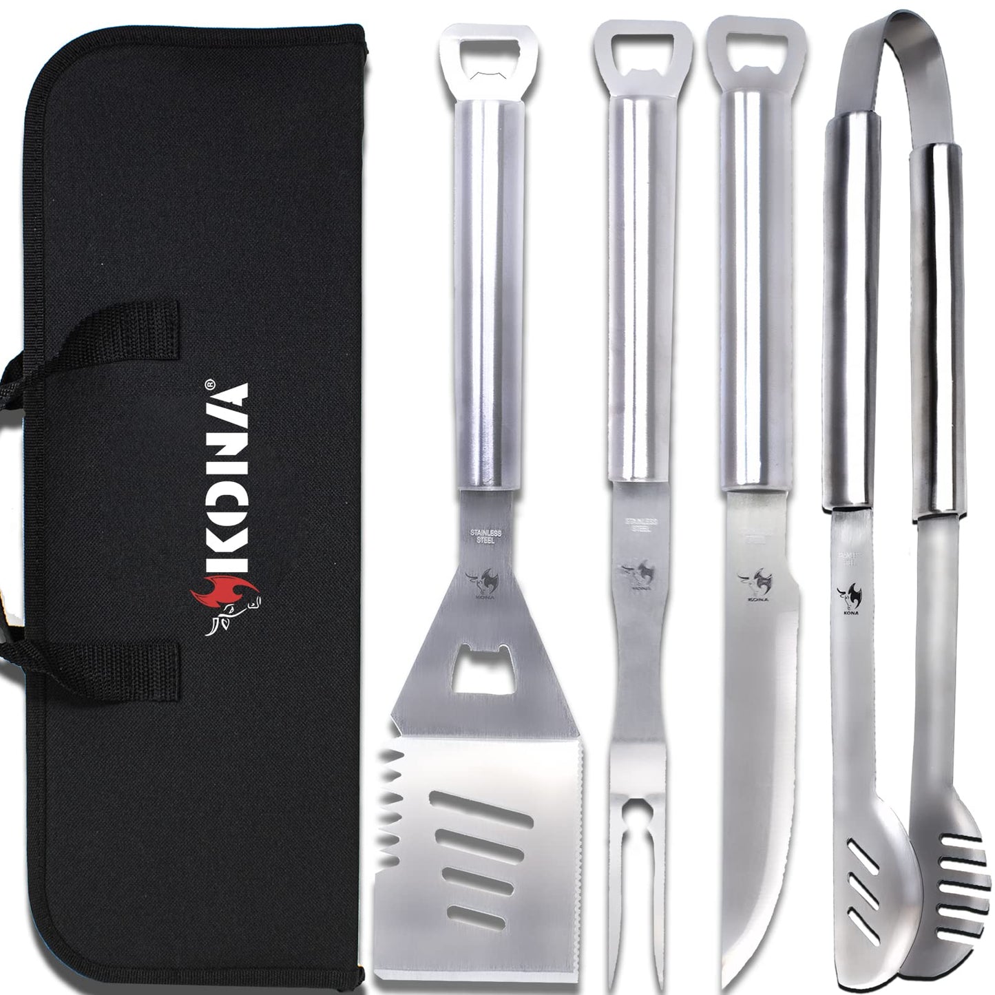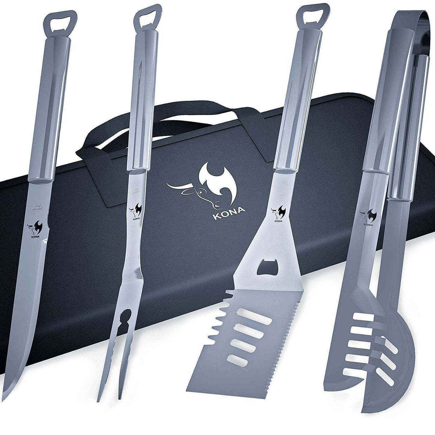 KONA BBQ Grill Tools Set with Case - 18 inches Long to Keep Hands Away from Heat, Premium Stainless Steel Grilling Utensils with Bottle Opener Handles - Makes A Great Gift