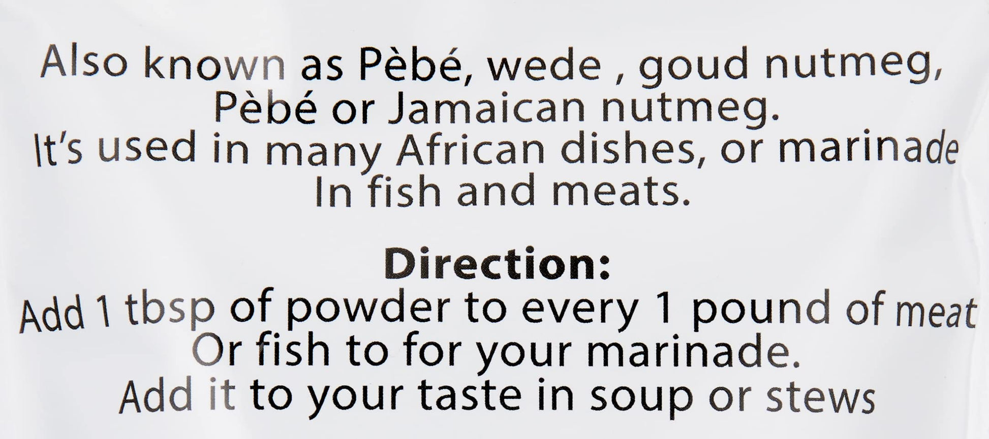- HOW TO USE IT – Calabash Nutmeg is a spice mostly used for Peppersoup, abacha, nkwobi, groundnut soup,black soup,Ofe Akwu, ugba/ukpaka, ose-oji,egusi,ogbono, Banga soup, garden egg sauce, goat meat stew, Ukwa, and isi ewu. The best of Ehuru is gotten when roasted. It adds extra flavor to meals.