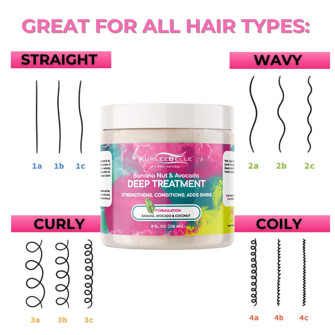 - WHO IT'S FOR: Banana Nut & Avocado Deep Treatment is just what the doctor ordered for dry, damaged hair. Bring those tresses back to life with our smooth concoction of Banana, Avocado, Honey and Coconut. For all hair types: Relaxed hair, Curly hair, Kinky Curly hair, Kinky Coily hair and Coily hair. Hair Type: 1A to 4C.