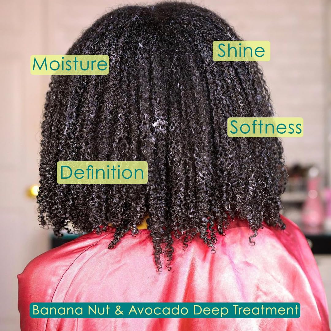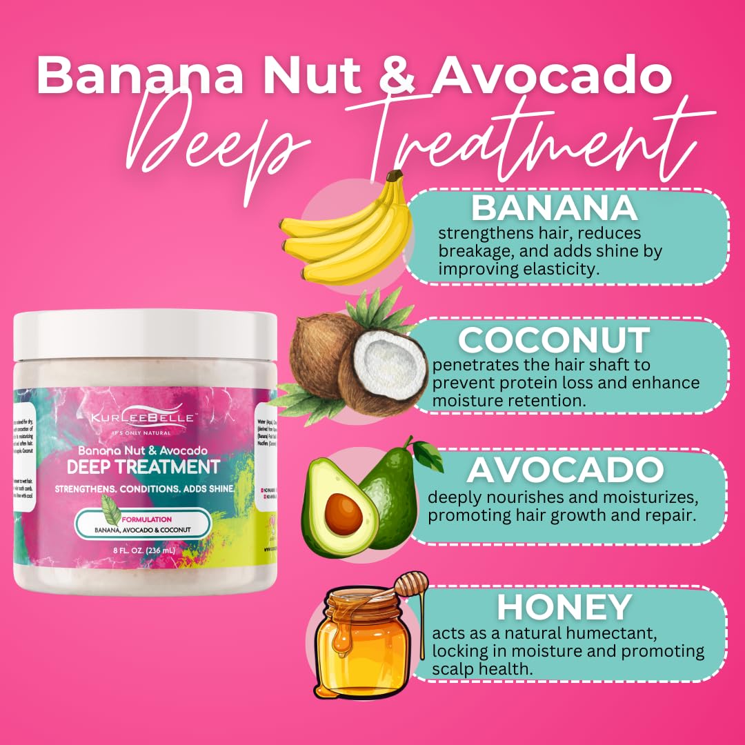 - WHAT IS IT: Wash Day would not be complete without Banana Nut & Avocado Deep Treatment! Itβs the perfect masque to treat your hair to a spa day! It not only smells delicious, like Banana Nut Muffins, but melts into the hair to nourish, strengthen, moisturize and add shine! This masque promotes growth, softens, nourishes and defines curls.