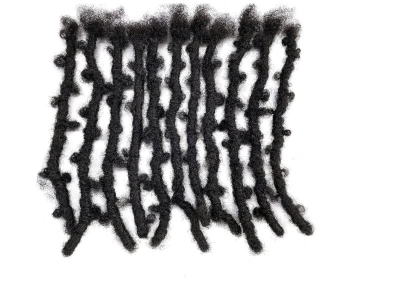Details: 100% Human Hair Dreadlock Extensions Handmade . These locs are made with 100% human hair. These dreadlock extensions feel and look like matured, aged, natural grown locs. The locs can be added to existing locs to add length or for repairs on broken locs. Each loc is handmade and unique. Approximately 75 Locs are needs for a full head