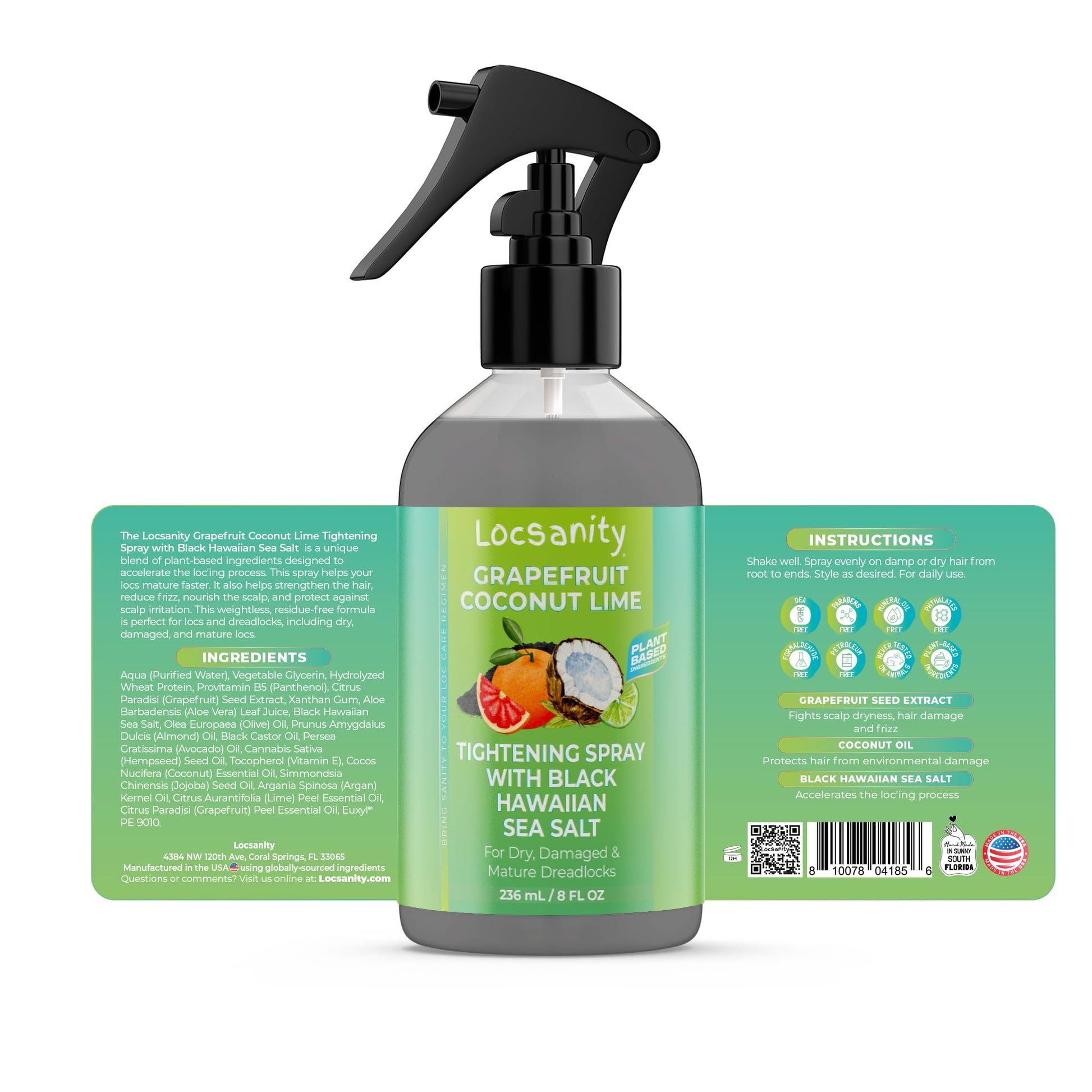 - Tightening Spray - Helps to accelerate the hair matting process by helping to bind the hair together. The spray contains ingredients Black Hawaiian Sea Salt