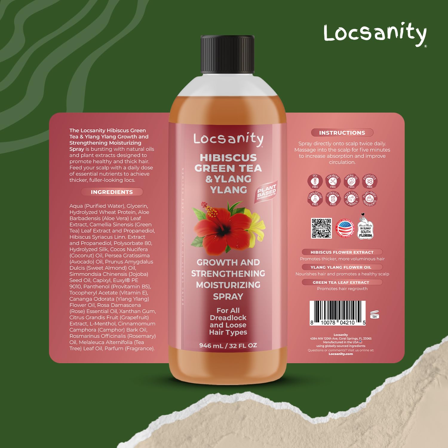 Locsanity Hibiscus Green Tea Hair Growth Spray for Dreadlocks and Loose Hairstyles Hair Care Treatment – Jumbo Size Loc Moisturizer for Thicker, Fuller, Longer Hair (32oz)
