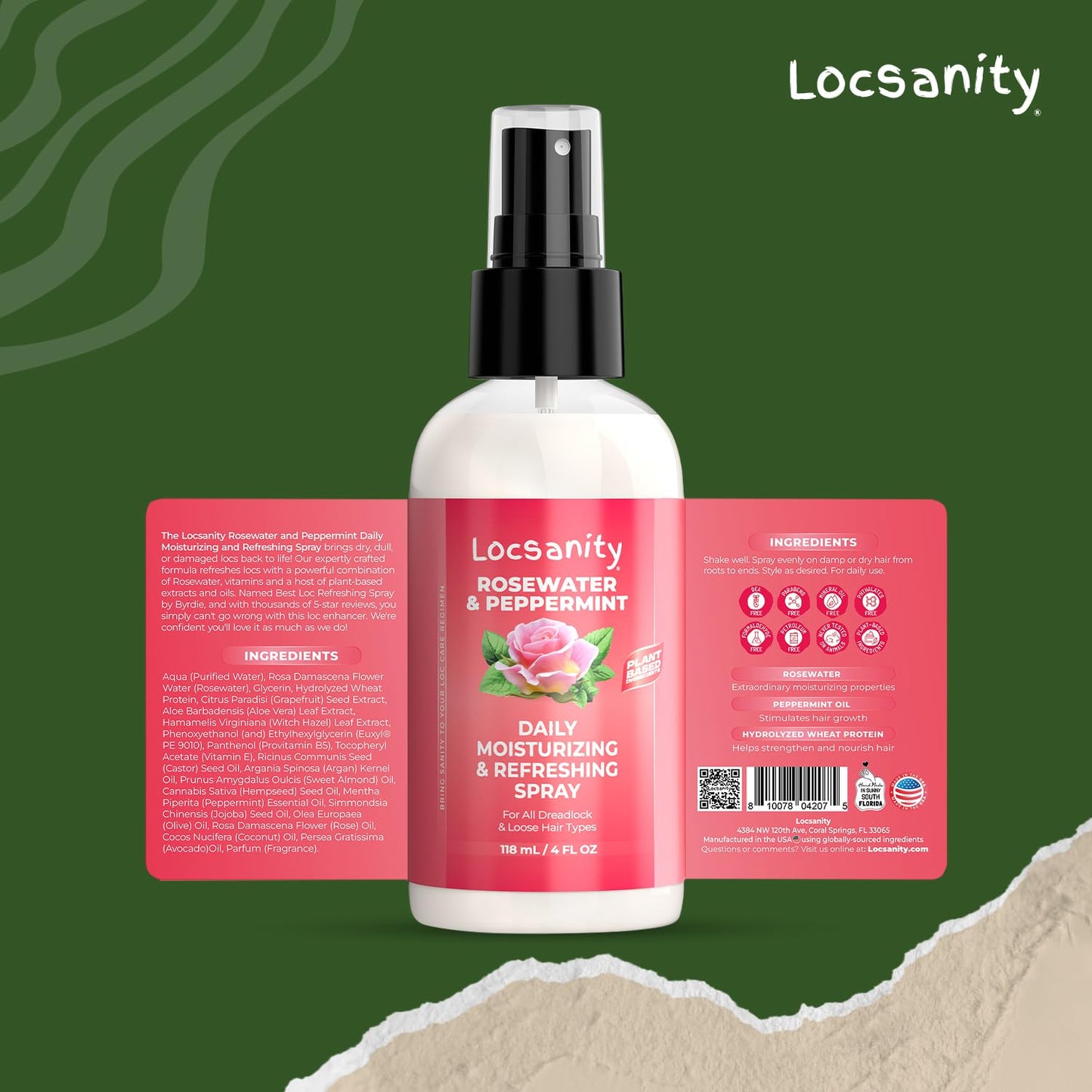 - Rejuvenate Dull Hair Flawlessly - Made from Rosewater, Peppermint Oil, and a host of other plant-based ingredients, this loc spray is designed to give you vibrant and gorgeous locs, without the fuss. A few spritzes a day are all you need for soft, shiny, and healthy-looking locs.