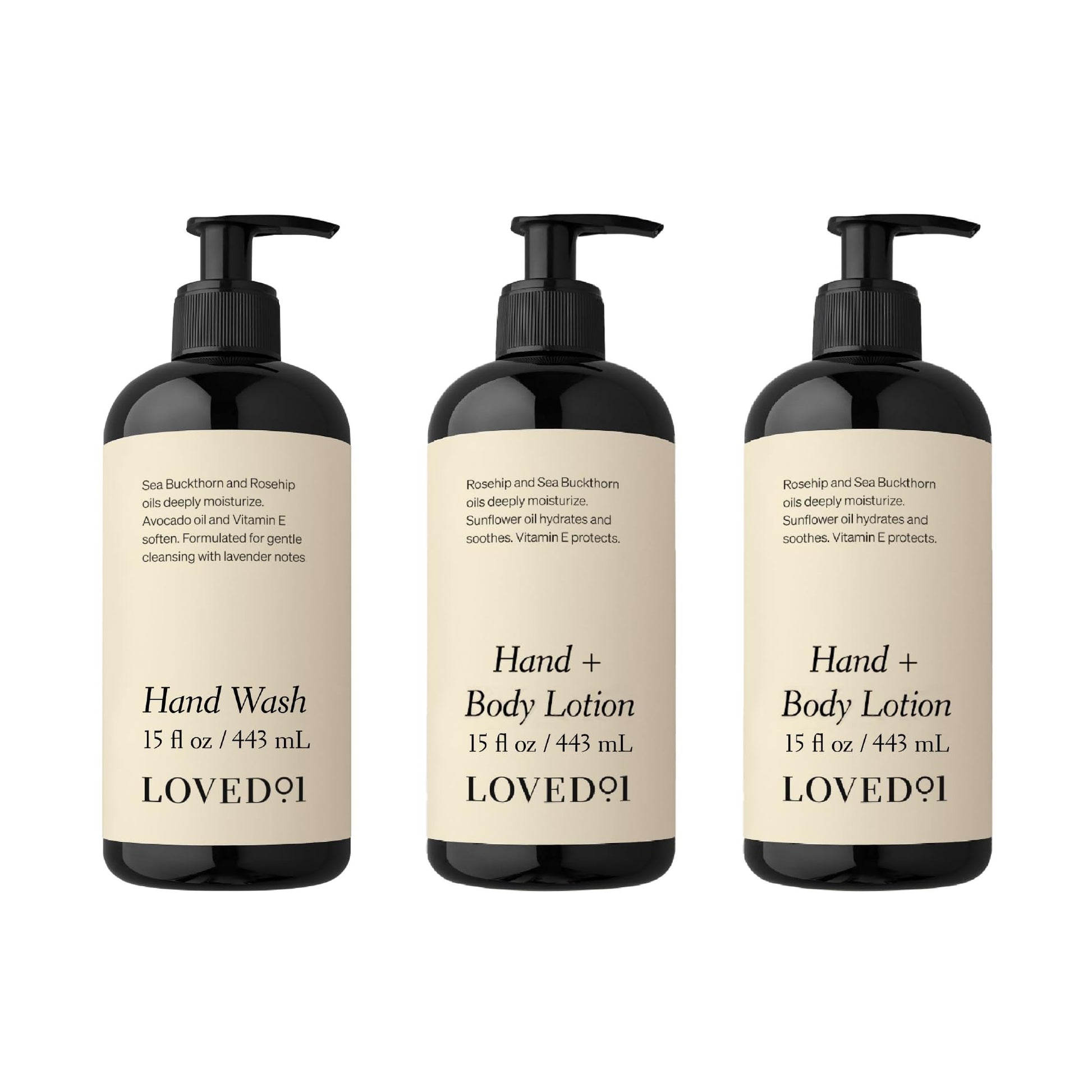 Loved01 Cleansing & Moisturizing Bundle Hand Wash & Hand/Body Lotion, (15 Oz Hand Wash & 2-Pack 15 Oz Hand & Body Lotion)