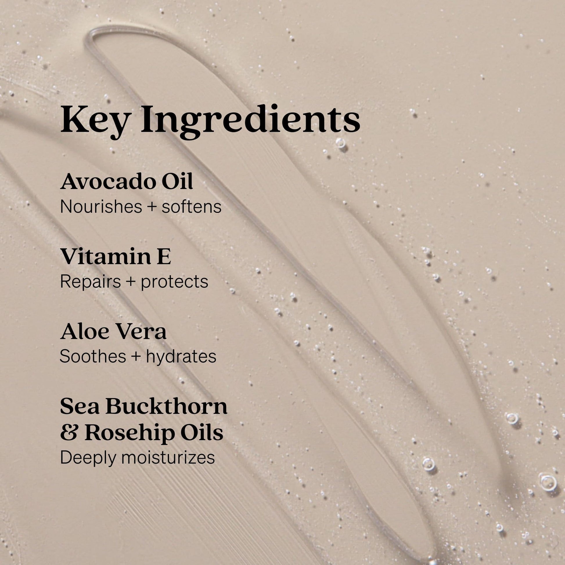 - NOURISHING FORMULA: Formulated without harsh surfactants, infused with nourishing oils, and lightly scented with soft lavender notes. The Rosehip and Sea Buckthorn oils deeply moisturize, Vitamin E and Avocado oil soften skin, while Aloe Vera calms