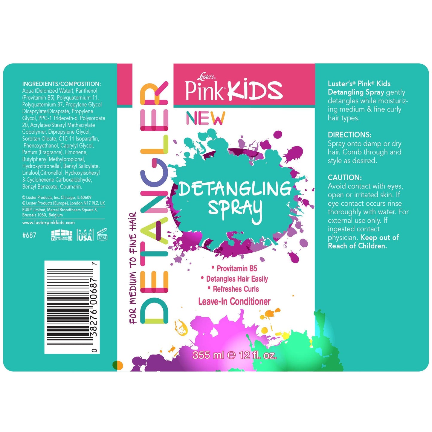 Details: Pink Kids Detangling Spray gently detangles while moisturizing medium and fine curly hair types. Pink Kids Detangling Spray, 12 ounce