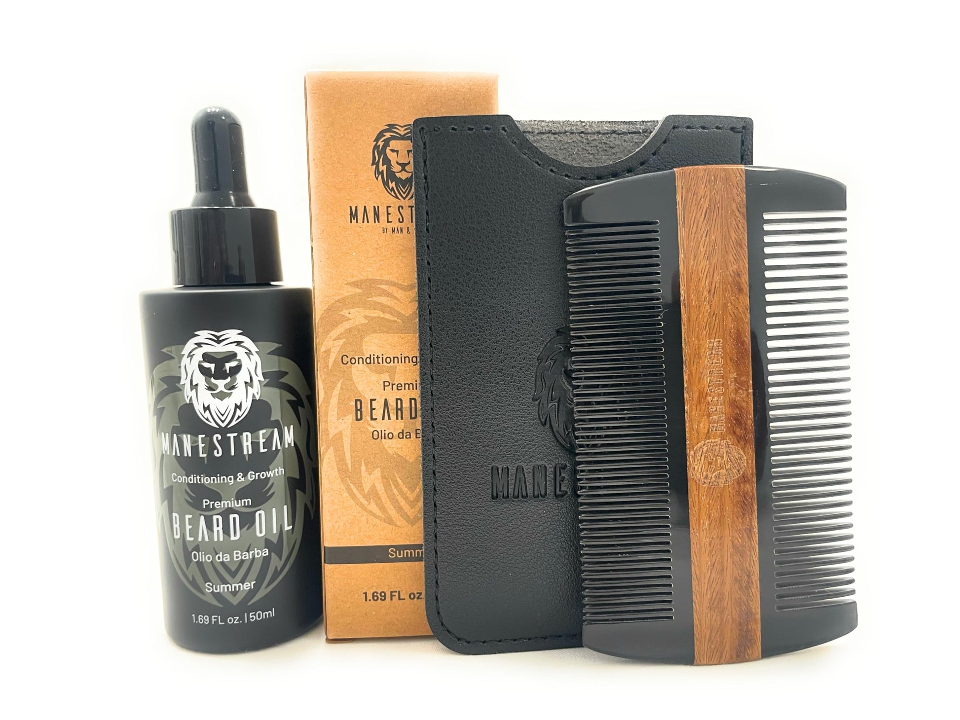 Details: MAN & MANE Manestream Beard Oil & Comb for Men, Beard Growth Oil, Hair Growth Oil with Jojoba, Macadamia, Sunflower, Olive Oils - 50ml (Summer (Orange))