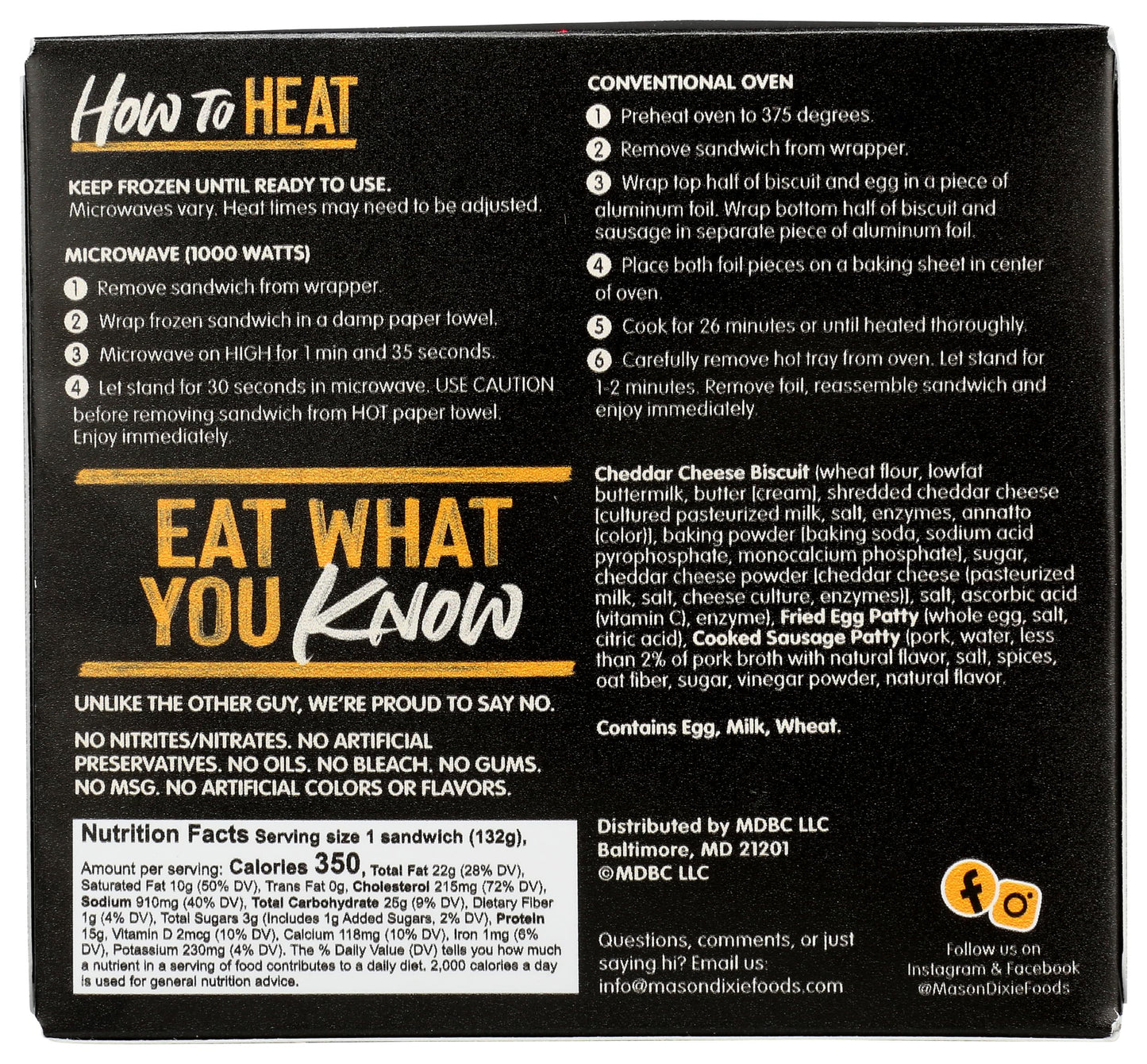 MASON DIXIE BISCUIT CO Cheddar Sausage Breakfast Sandwich, 4.7 OZ