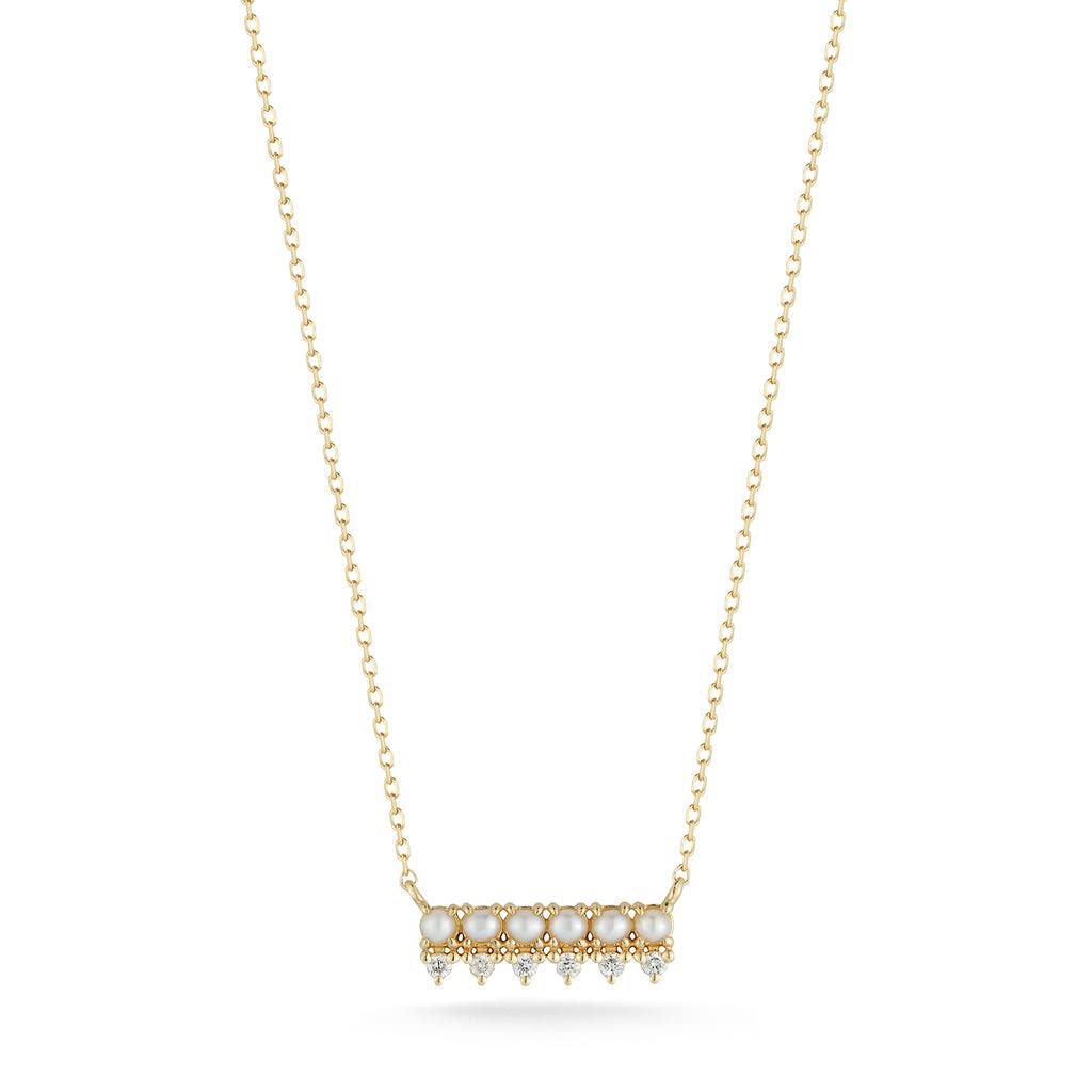 Mateo New York, 14kt The Little Things Pearl and Diamond Horizontal Bar Yellow Gold Necklace For female, womens