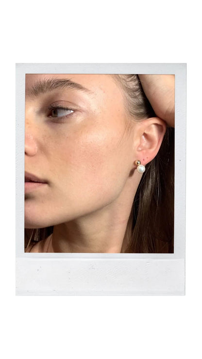 Mateo New York, Gold Ball w Pearl Ear Jacket earring