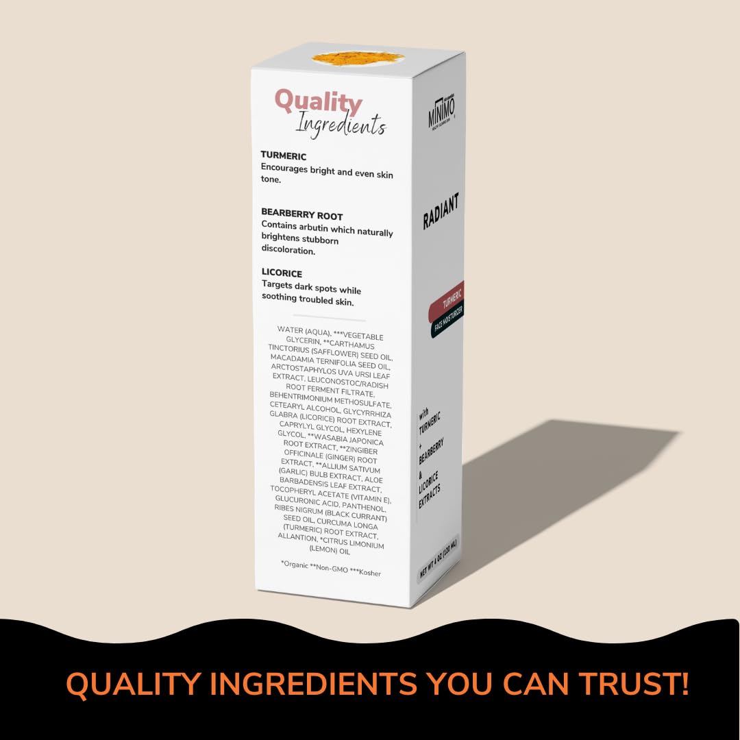 - RADIANT GLOW WITH TURMERI: Experience the power of turmeric in Minimo moisturizer face cream. It reduces hyper-pigmentation and promotes bright, even skin tone. Ideal as a face moisturizer for women, it nourishes your skin, leaving it radiant and youthful.