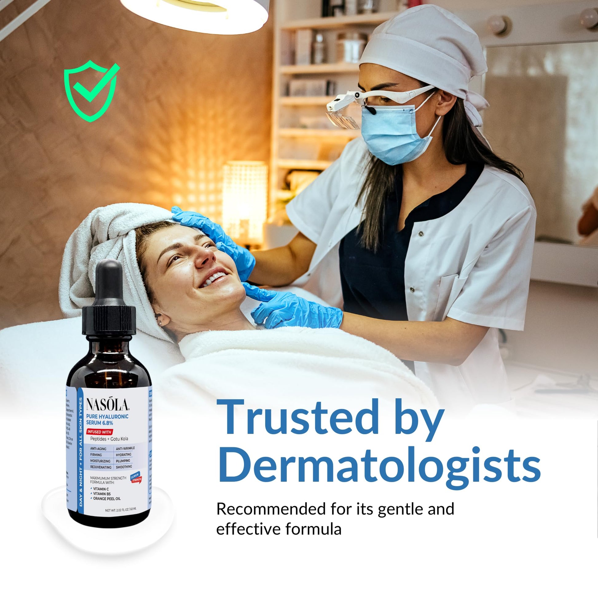 - NASOLA 6.8% PURE HYALURONIC ACID SERUM- This serum is formulated with 6.8% pure hyaluronic acid, a powerful ingredient that helps to hydrate and moisturize the skin for a healthy, youthful glow.