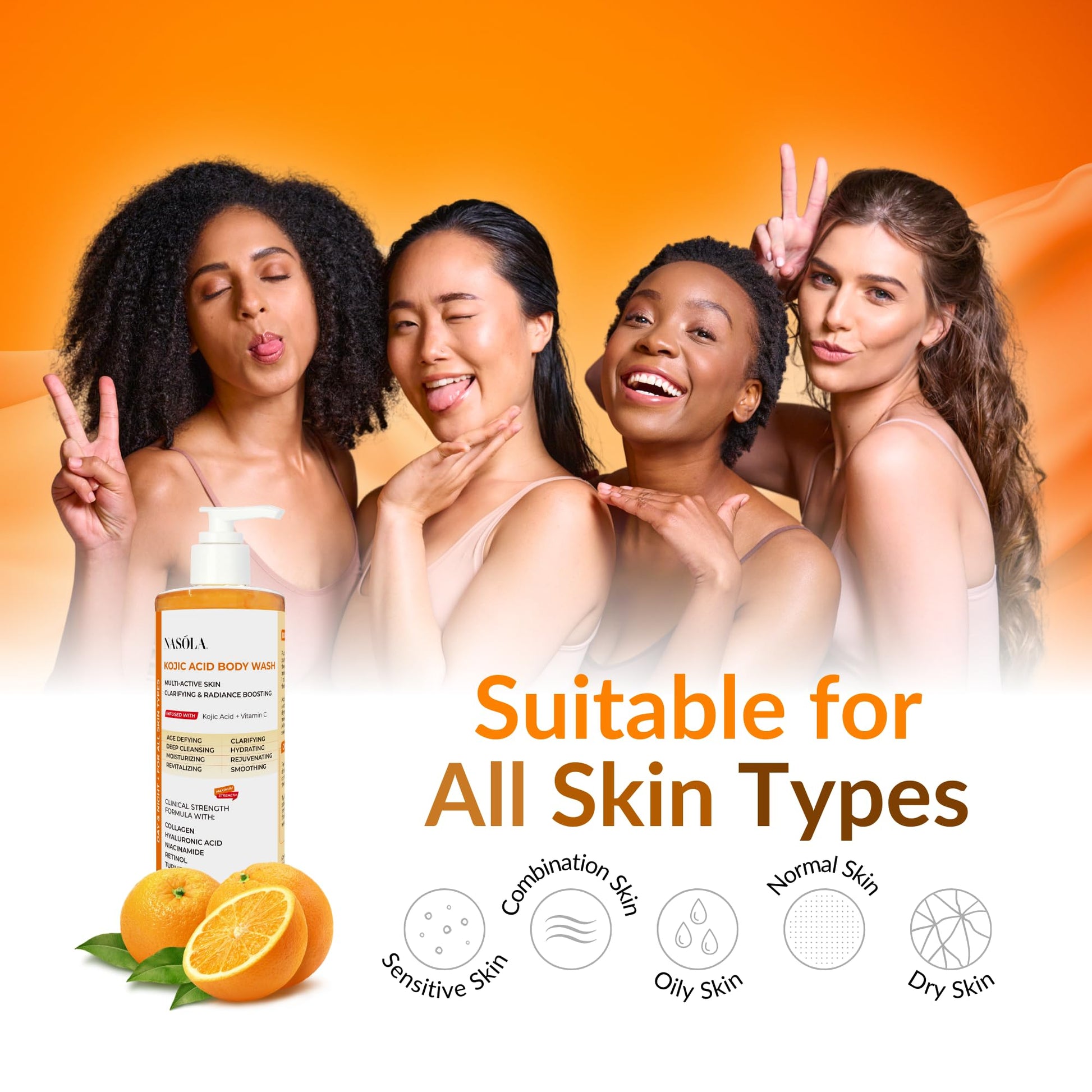 - Whole Body Skin Clarifying: Harnessing the potency of the Original Japanese Kojic Acid Complex, Nasola Kojic Acid Body Wash is tailored to diminish skin discoloration, sun-induced marks, blemishes, and other complexion inconsistencies, revealing a radiant and luminous glow. Specifically designed for the whole body, expect a transformative refining experience.