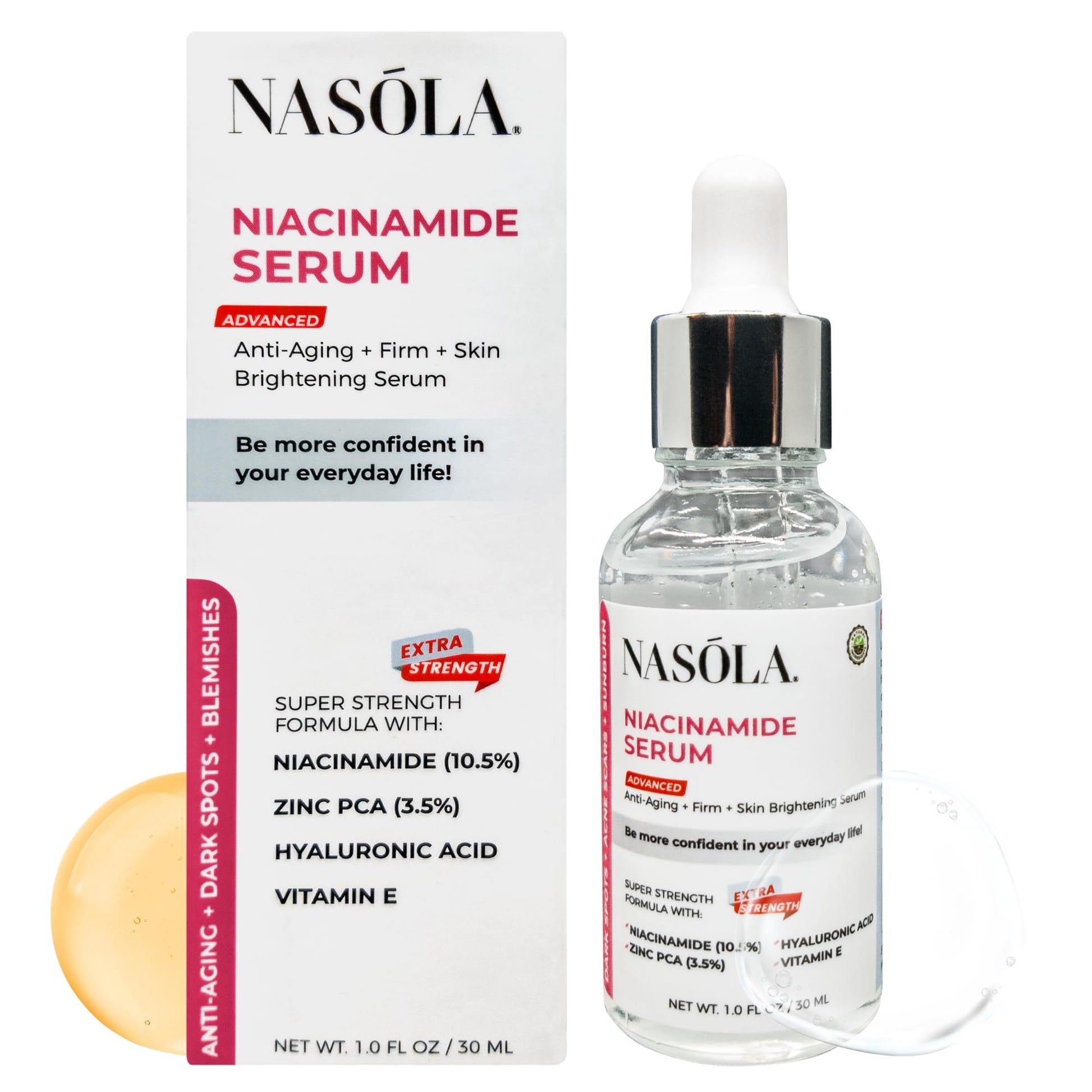 - NATURAL INGREDIENTS - Nasola Niacinamide Serum is among the leading serums for skin care, infused with natural ingredients that are known to help reduce the appearance of wrinkles and blemishes. It effectively targets signs of aging, clarifies skin tone, and reduces the appearance of fine lines and wrinkles.