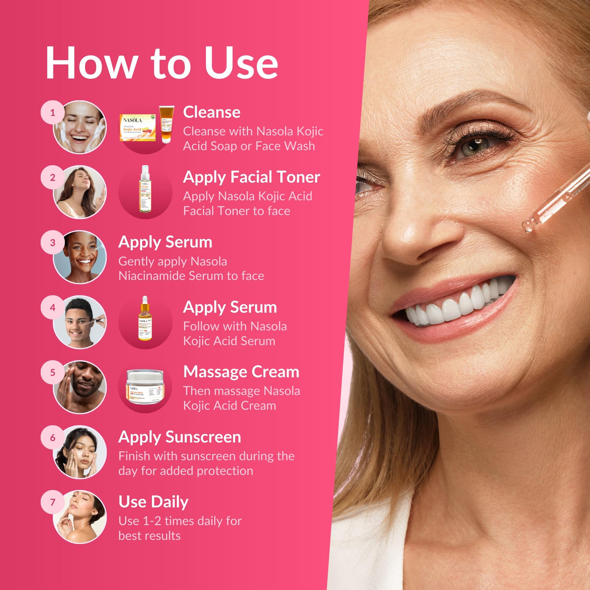 - LOOK YOUNGER - Our advanced dark spot serum formula works to smooth out the appearance of fine lines, wrinkles, age spots, and sun-induced marks for a more youthful look. Nasola Niacinamide Serum can help you achieve a more youthful appearance with regular use.