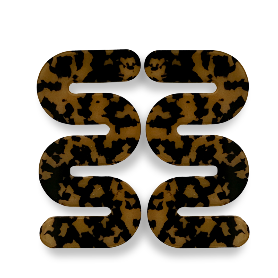 a dark tortoise print earring. approximately 4 inches long.