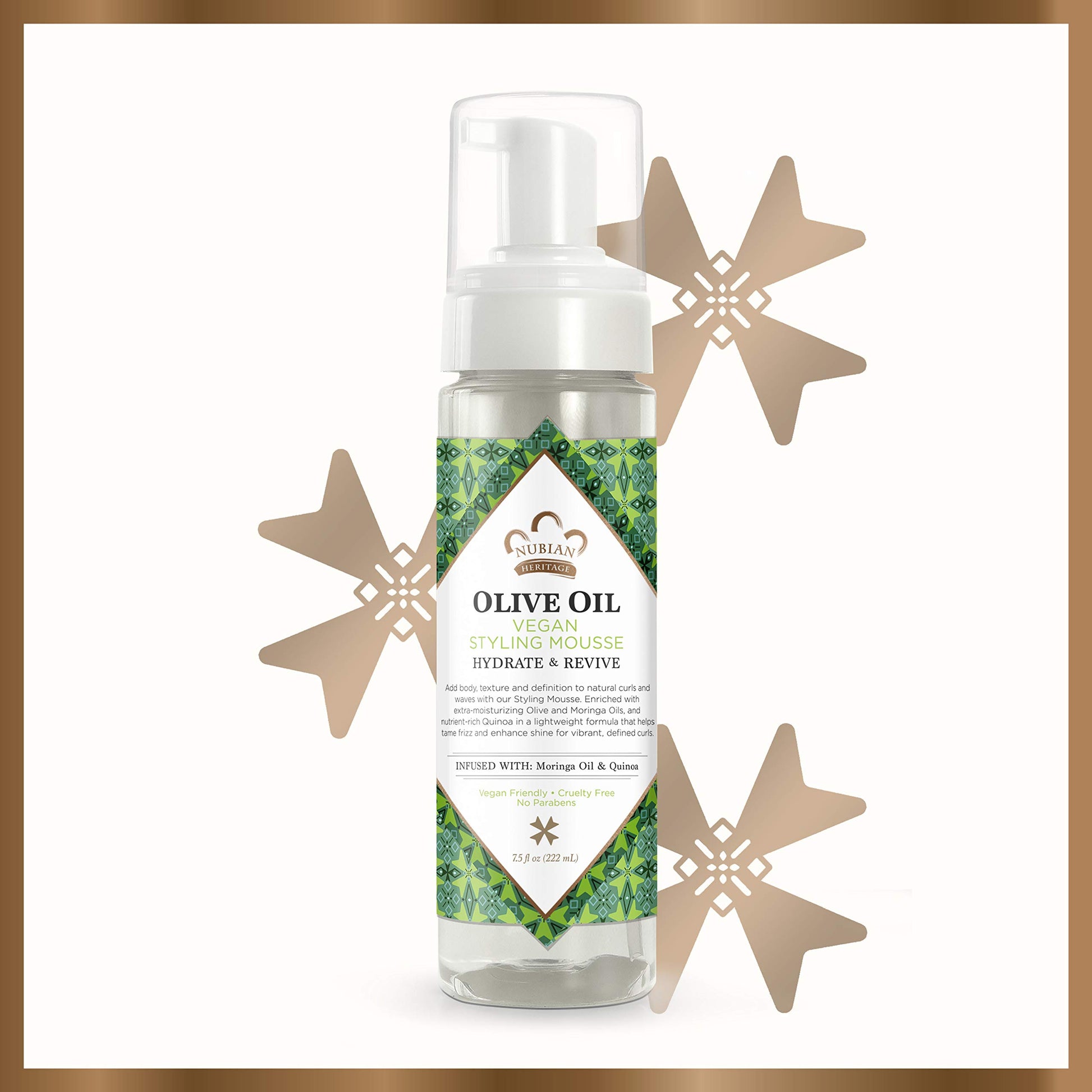 Nubian Heritage Weightless Styling Mousse for Dry Hair, Olive Oil Hair Mousse That Nourishes for Healthy and Hydrated Hair, 7.5 Oz