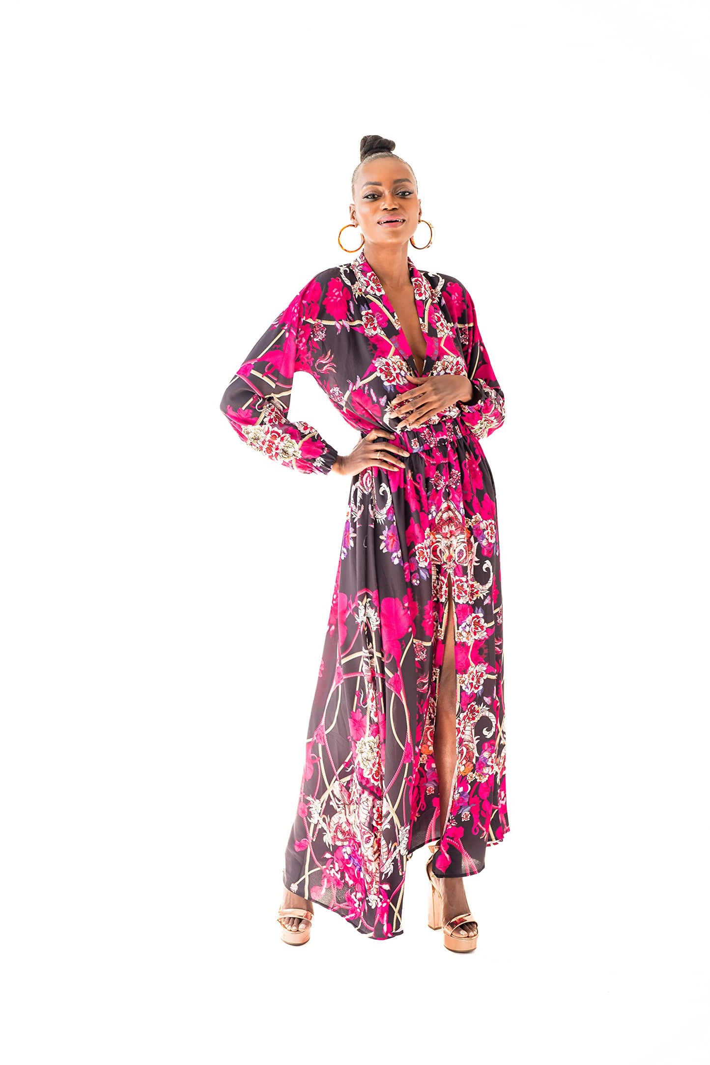 - Our Felicia maxi dress with dolman sleeve and exaggerated take on traditional prints make this a fashion statement not only for summer, but all year round. Features our signature waist and sleeve elastic treatment.