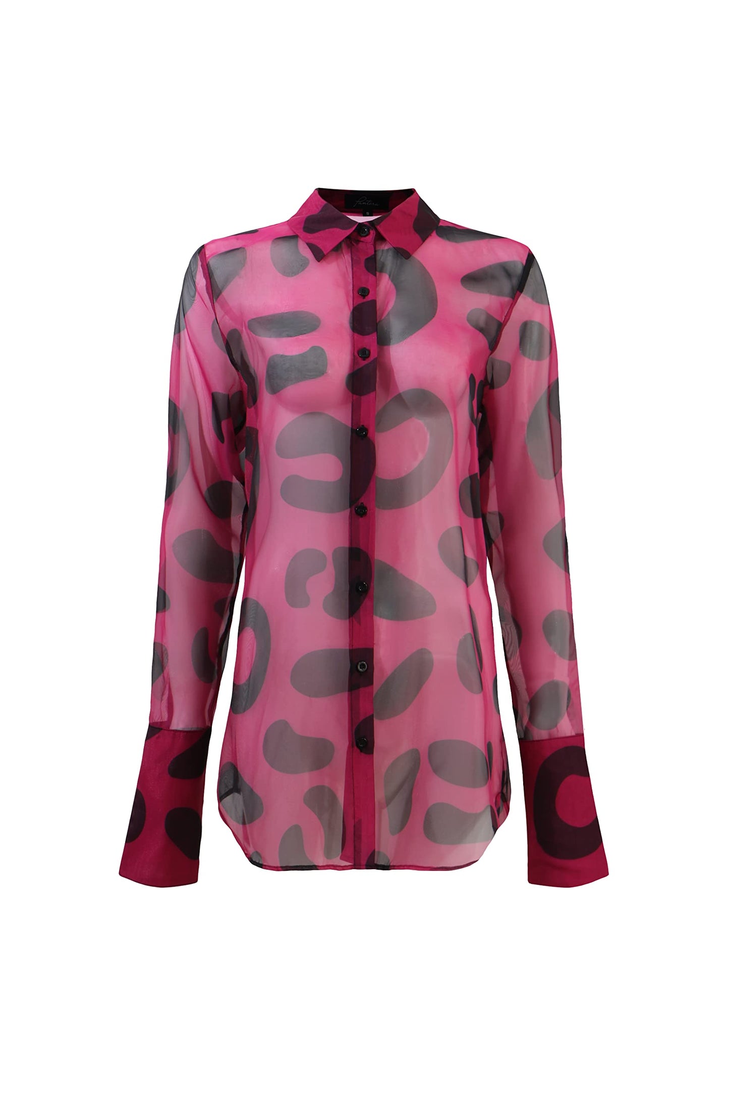 Pantora Women's Latisha Organza Button Up, Pink Leopard, Large