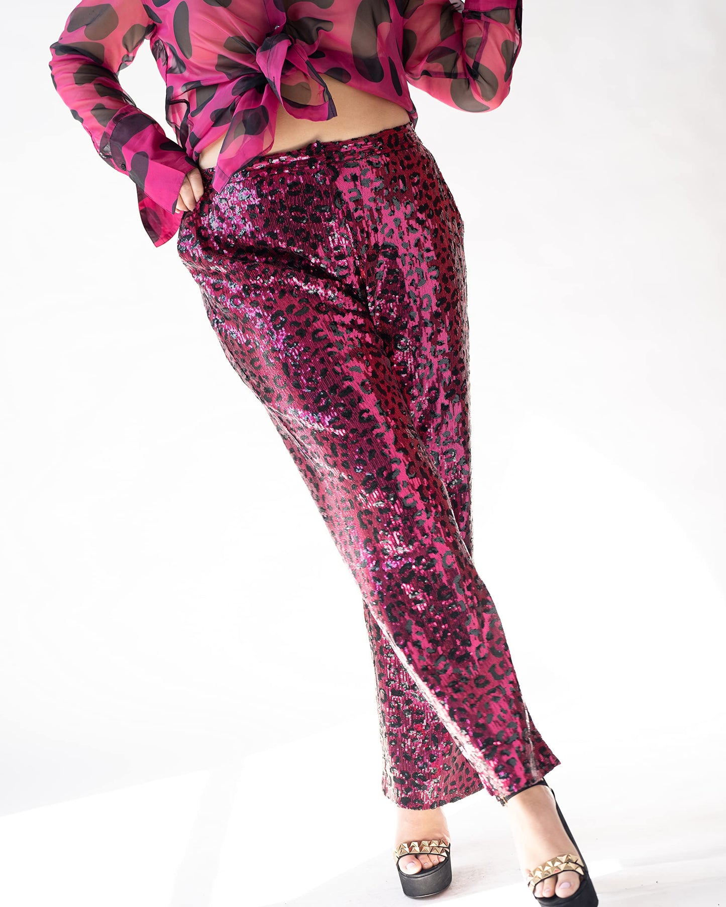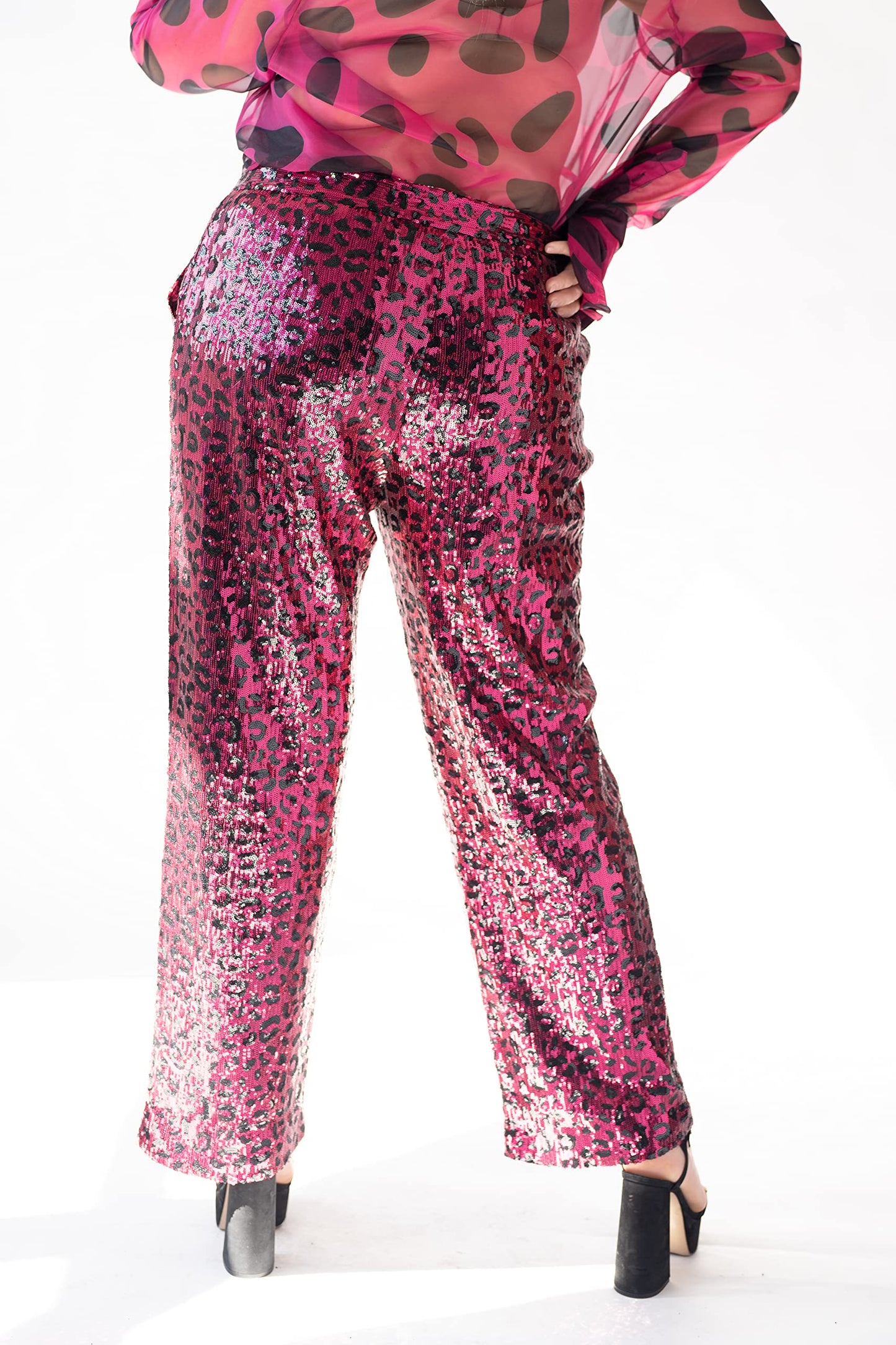 Pantora Women's Stacy Sequin Pant, Pink Leopard, Large