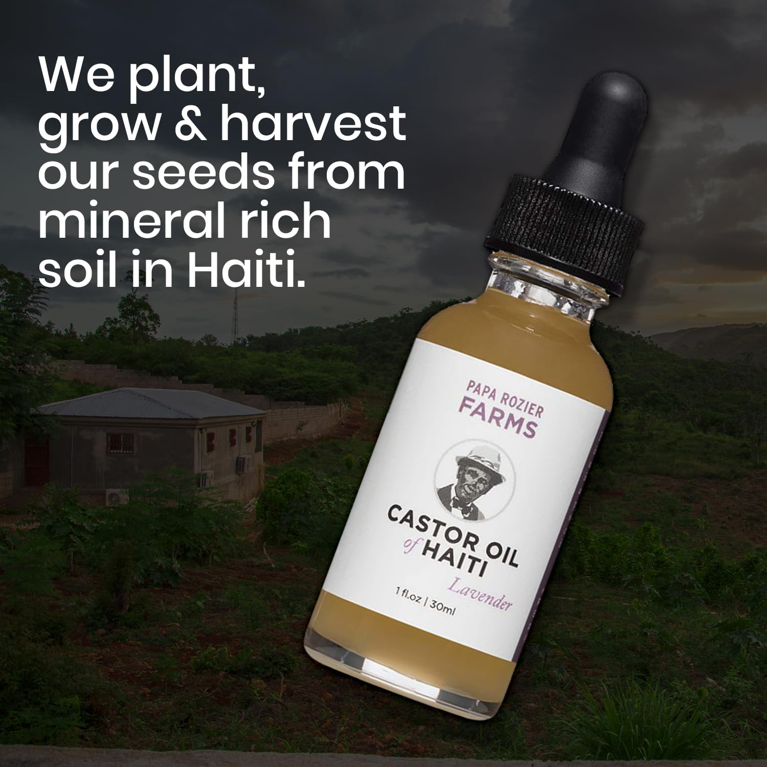 Papa Rozier Farms Lavender Pure Castor Oil of Haiti - Organic Cold Pressed - Hexane Free - 1oz – Unrefined – Oil for Hair Growth Treatment, Dry Skin Moisturizer, Eyelashes & Eyebrows, Pack of 1