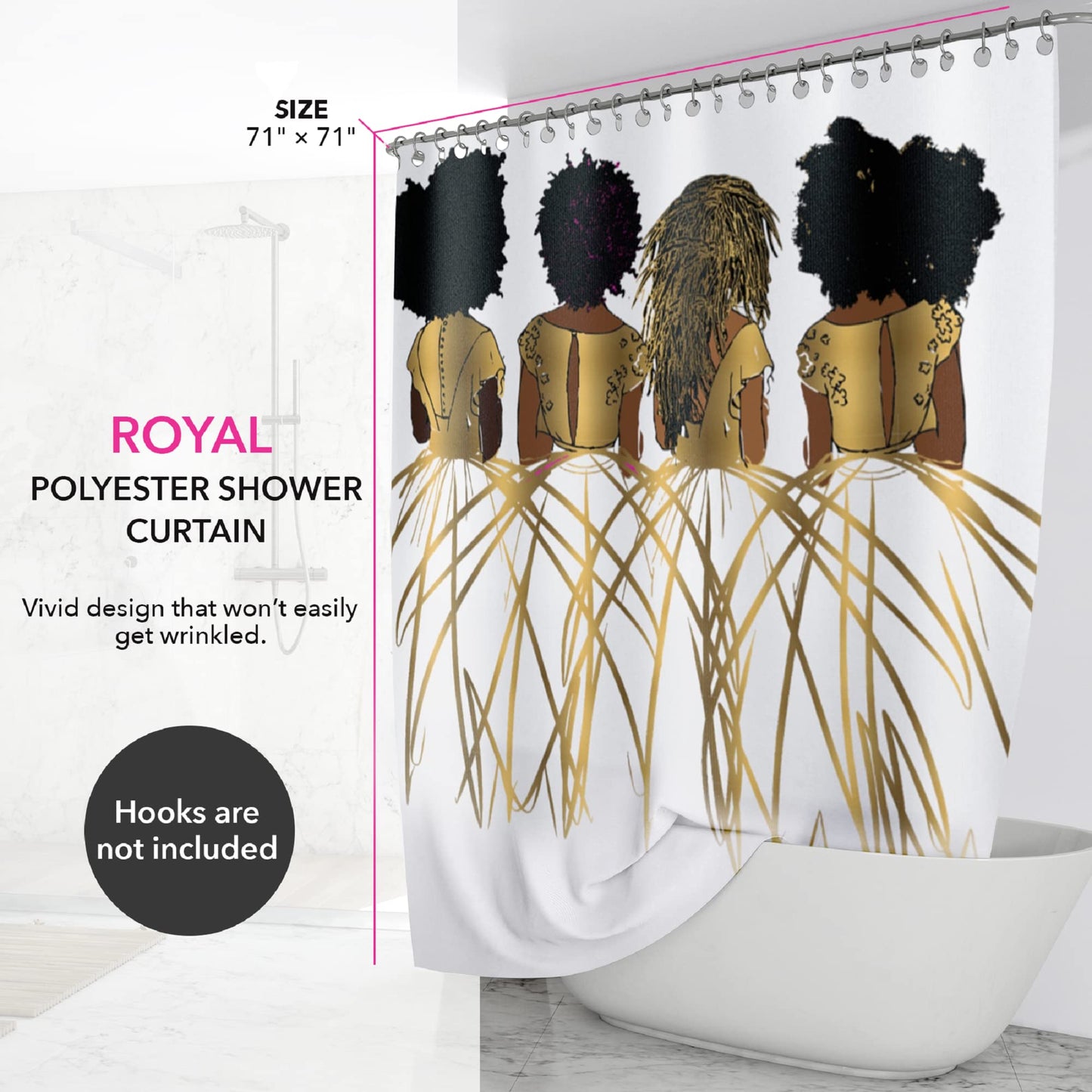 Pardon My Fro Royal Shower Curtain - 100% Polyester Fabric Shower Curtains with Print - Hotel & Home One Piece Hookless Shower Curtains w/ 12 Grommets, Chic Style Bathroom Curtain (White71×71")