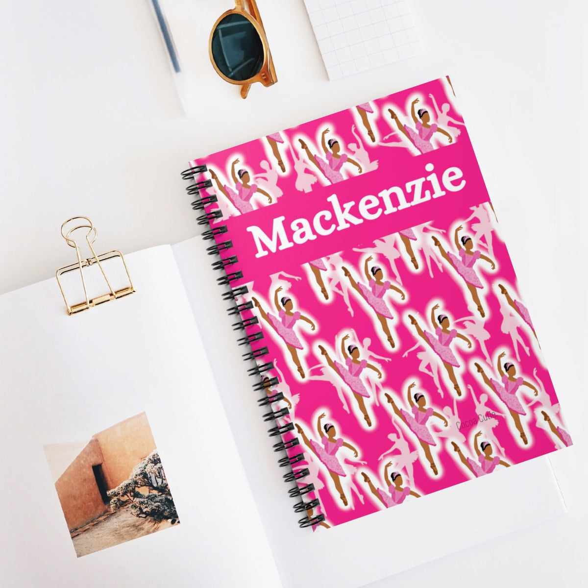 Personalized Pink Ballerina Spiral Notebook - Ruled Line