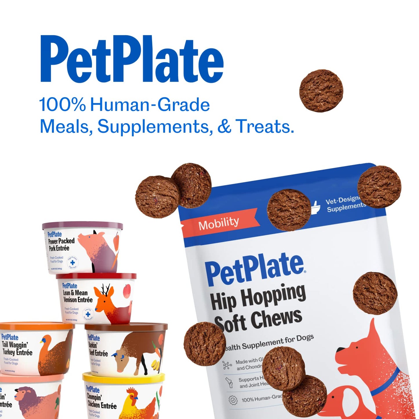 PetPlate Hip Hopping Soft Chews for Dogs, Hip and Joint Supplements, Organic and Human-Grade Ingredients, Mobility Support, Pet Supplies (Pack of 1, 9.8 Ounce)