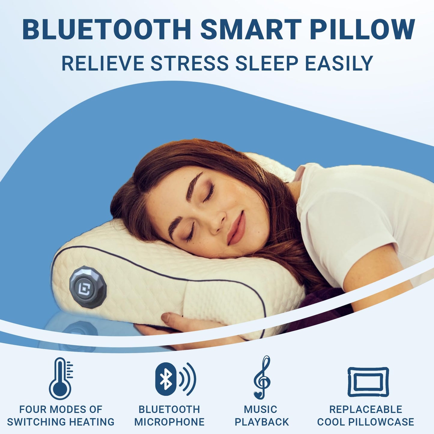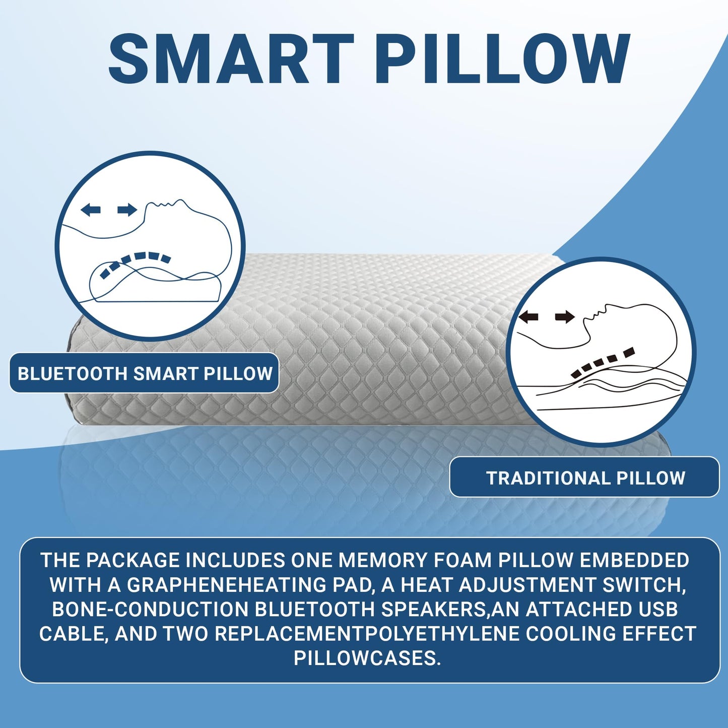 PillowCoach2 Smart Memory Foam Pillow with Bone Conduction Bluetooth Speaker, Heat Adjustment via Switch, and Two Cooling Effect Polyethylene Fiber Material Pillow Covers