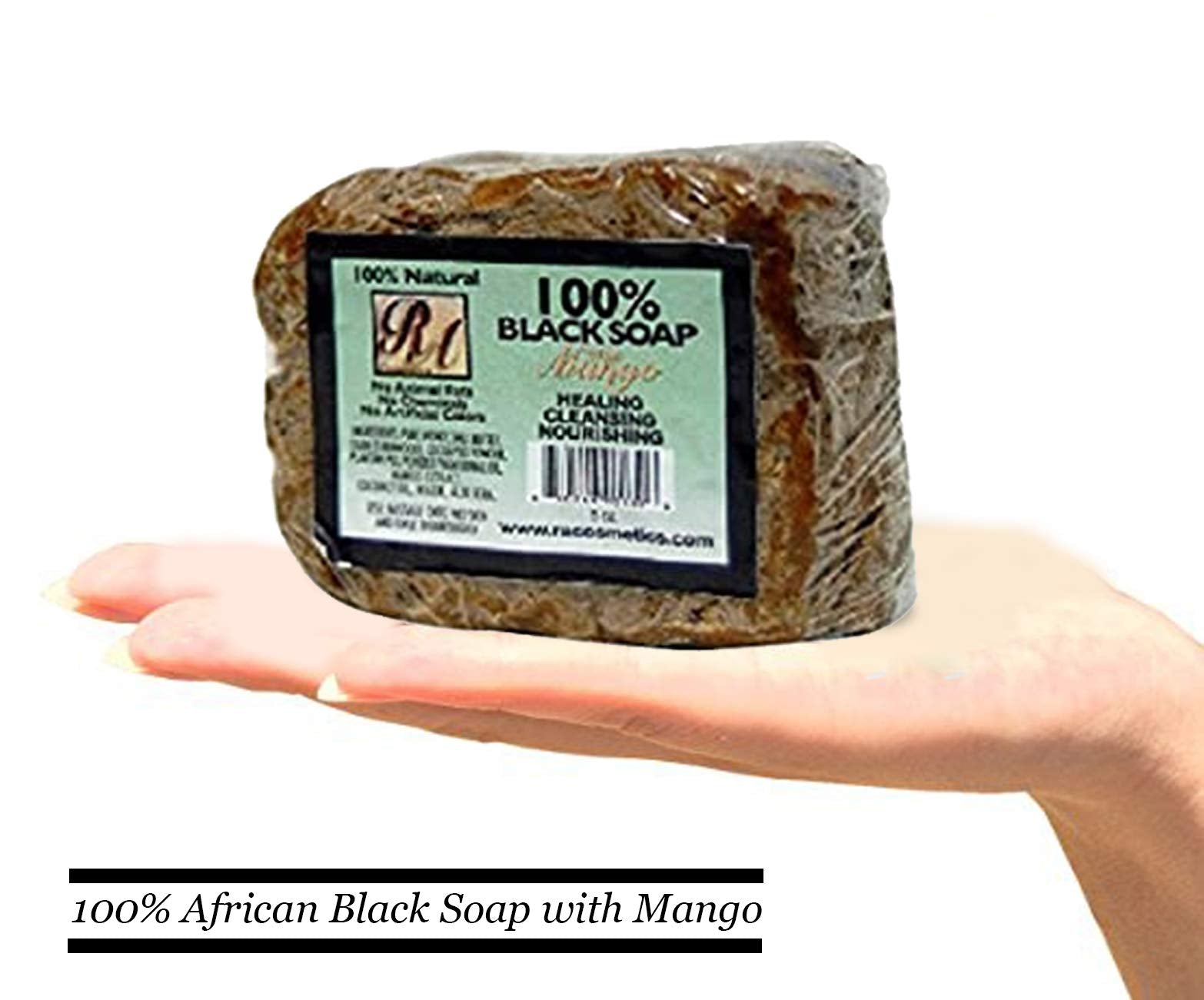 RA Cosmetics 100% Natural African Black Soap, Mango Scent, 5 oz, 141g