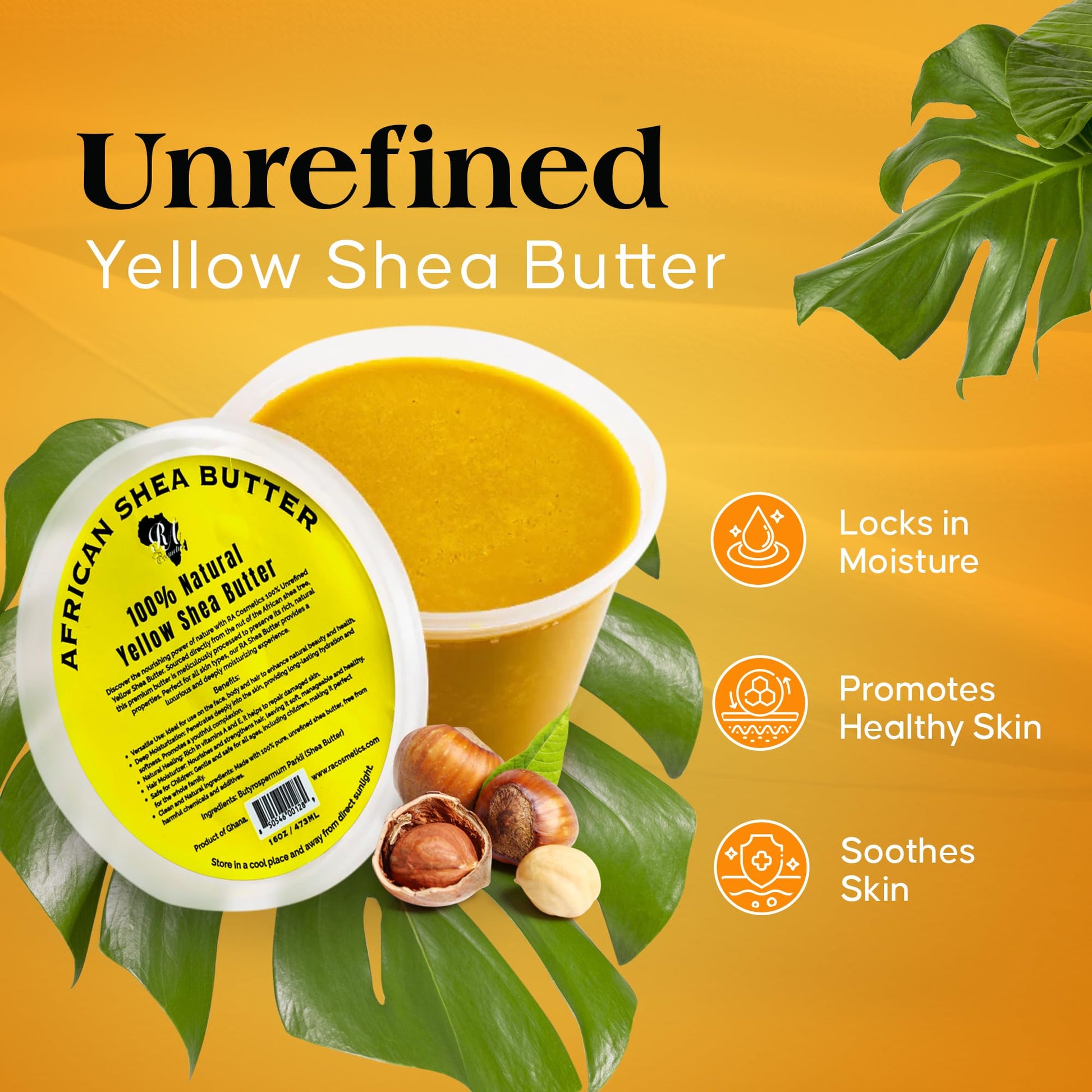 - PURE UNREFINED SHEA BUTTER FROM GHANA: Crafted by hand from the African Shea Tree, RA Cosmetics Shea Butter is 100% pure and unrefined. Rich in essential fatty acids and vitamins E & F, it deeply moisturizes and revitalizes dry skin, while promoting a softer, smoother texture naturally.