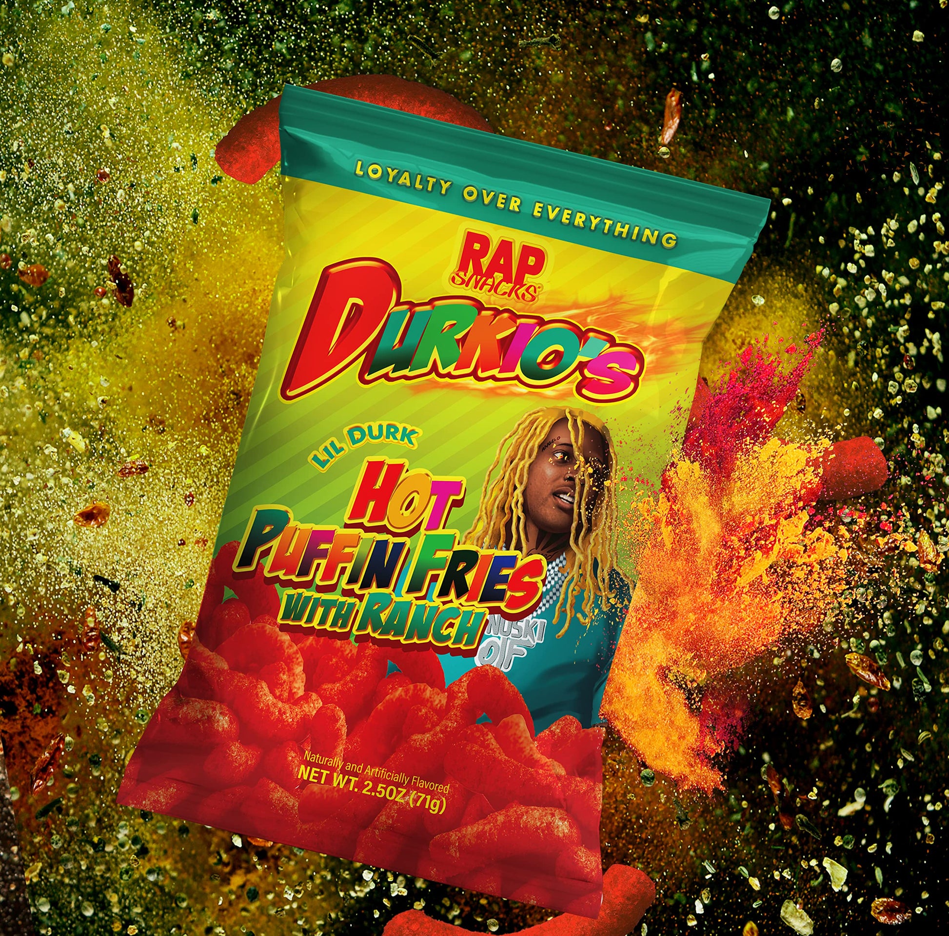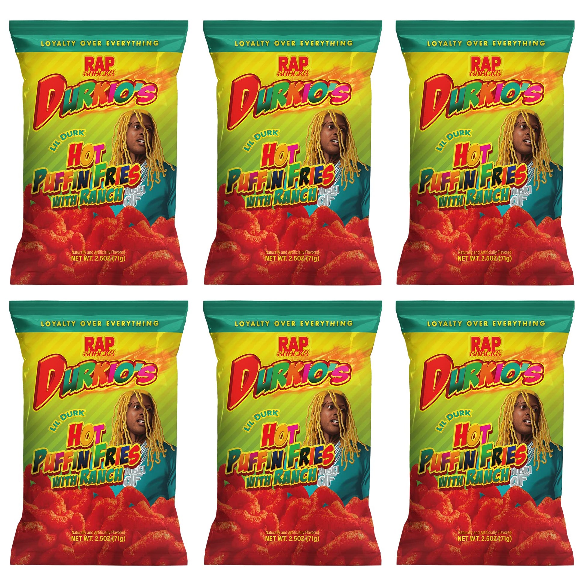 Details: Rap Snacks Lil Durk Durkio's Hot Puffin Fries with Ranch 2.5 Oz Bags - Pack of 6