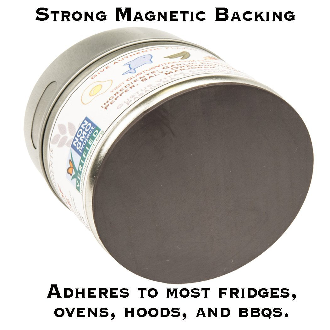 - Magnetic Tins: Each and every tin has a unique magnetic base that sticks to most metal surfaces: your fridge, BBQs, hood, range, and oven. Keep your artisanal seasoning within easy armβs reach, and transform simple plates into chef-driven gourmet dishes.