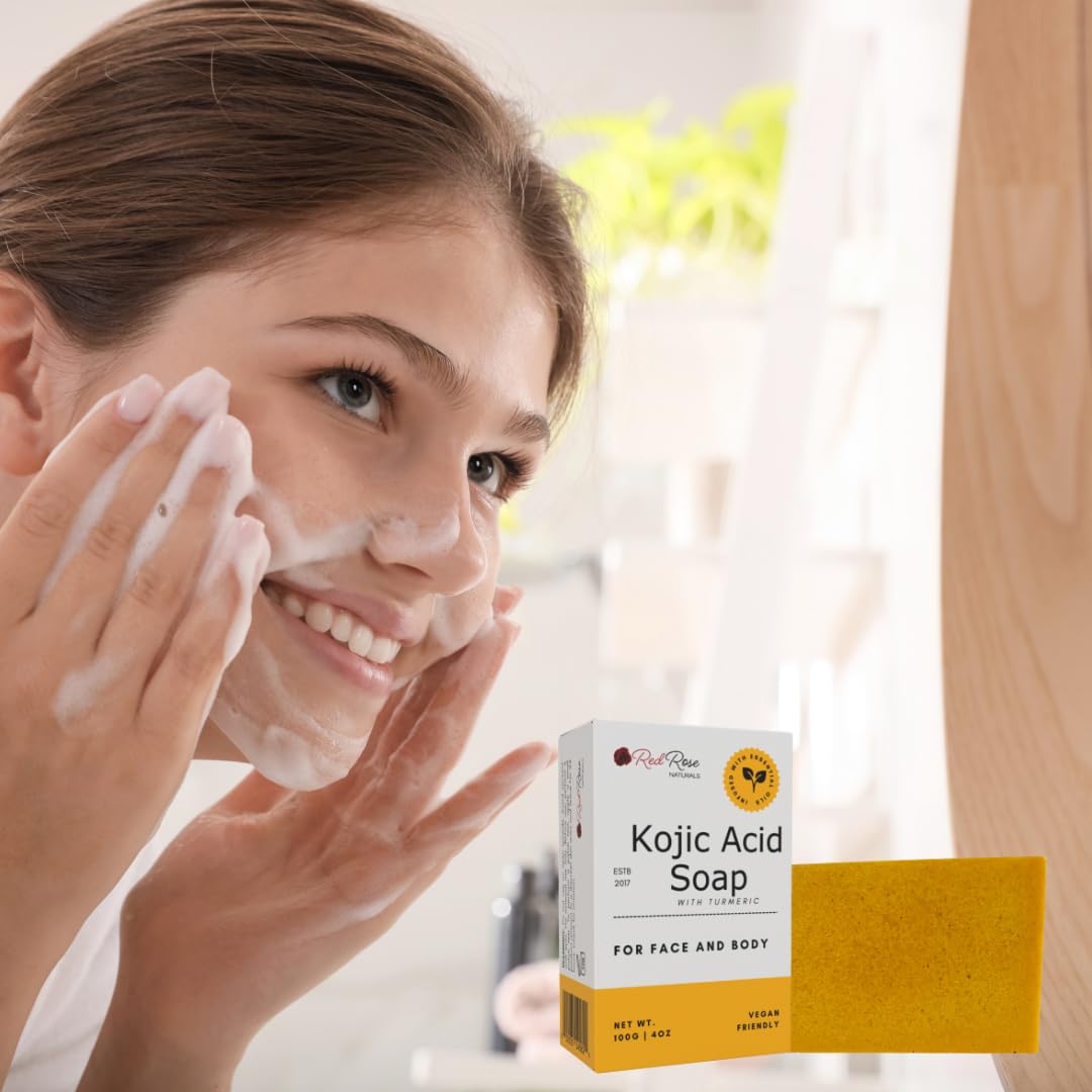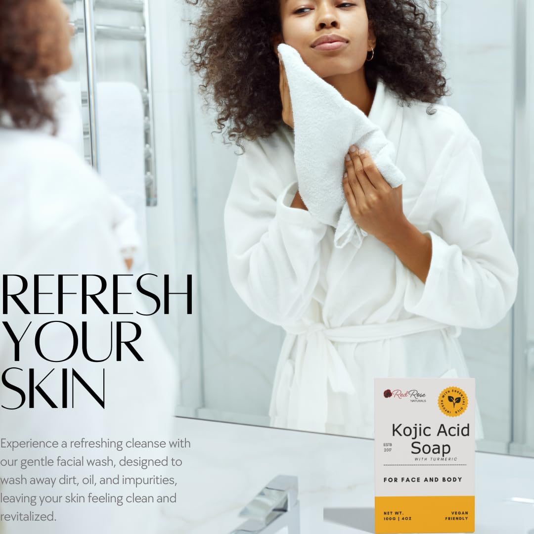 Red Rose Naturals Kojic Acid Soap with Turmeric, 4 oz Bar
