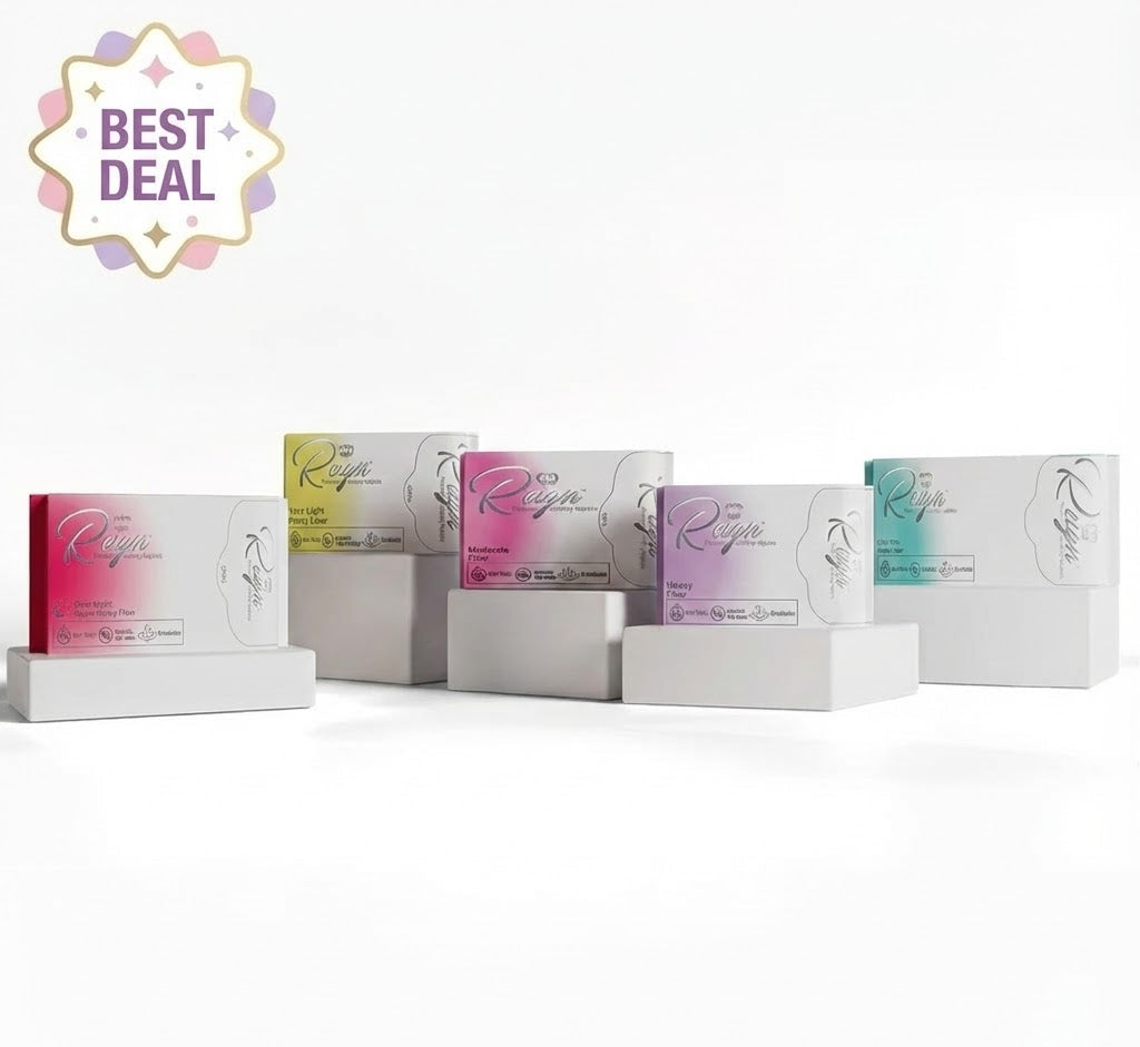 Our Reign Supreme package consist of one pack of each of our Reign Premium Sanitary Napkins.