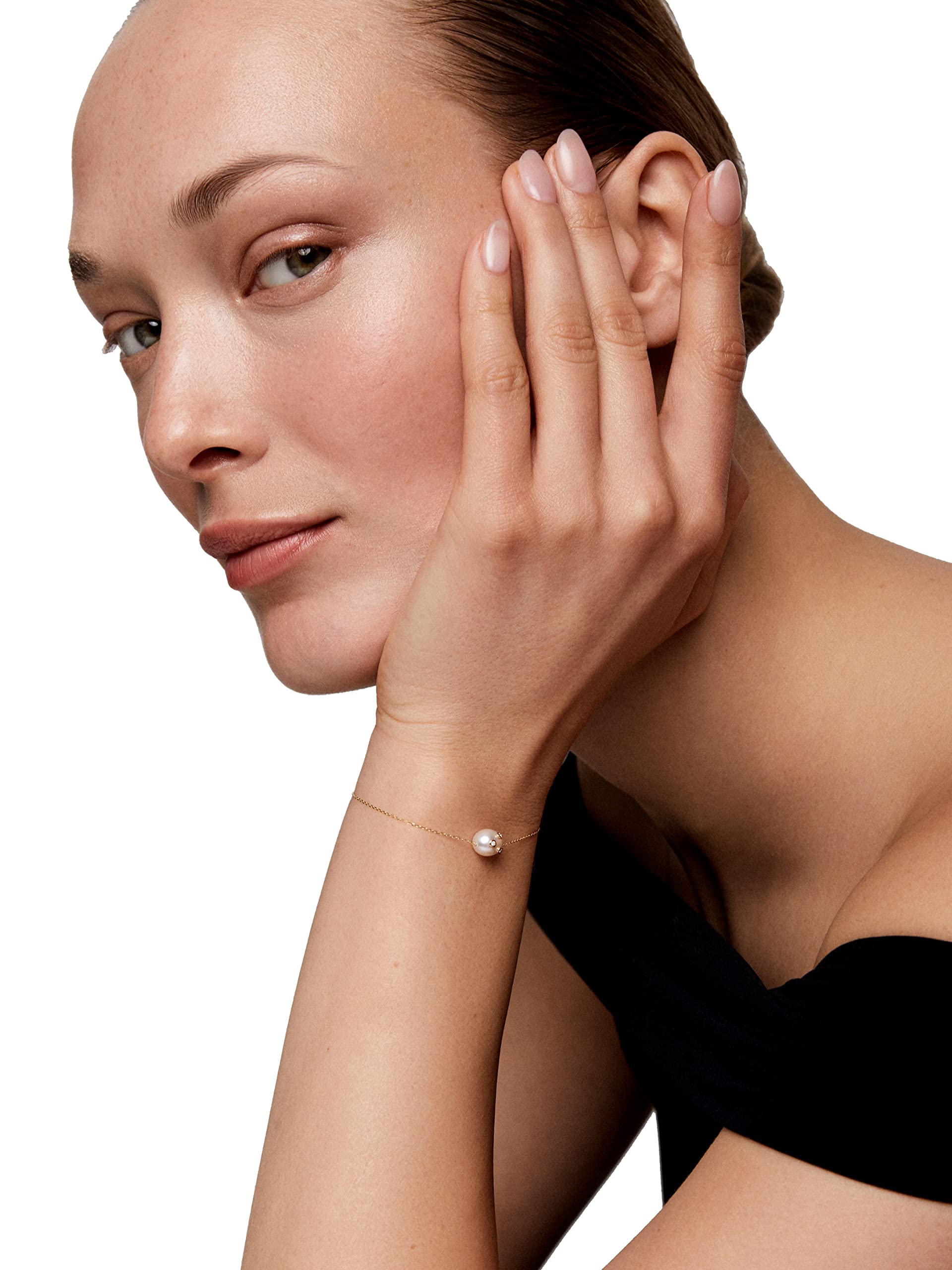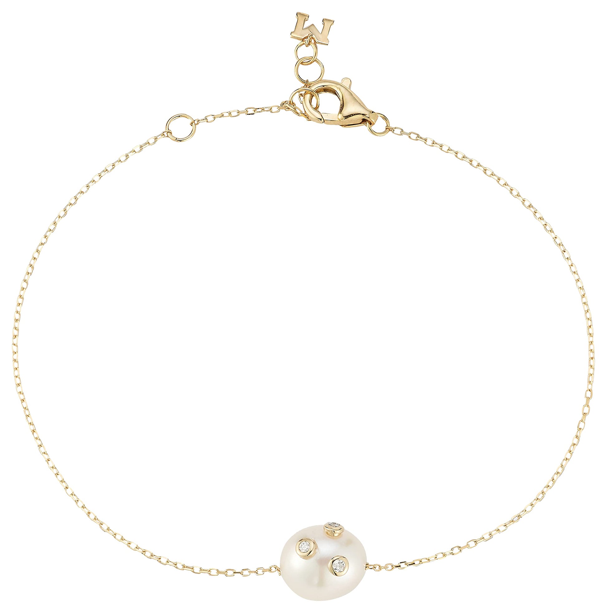 Scattered Diamond Bezel Baroque Pearl Bracelet, OS