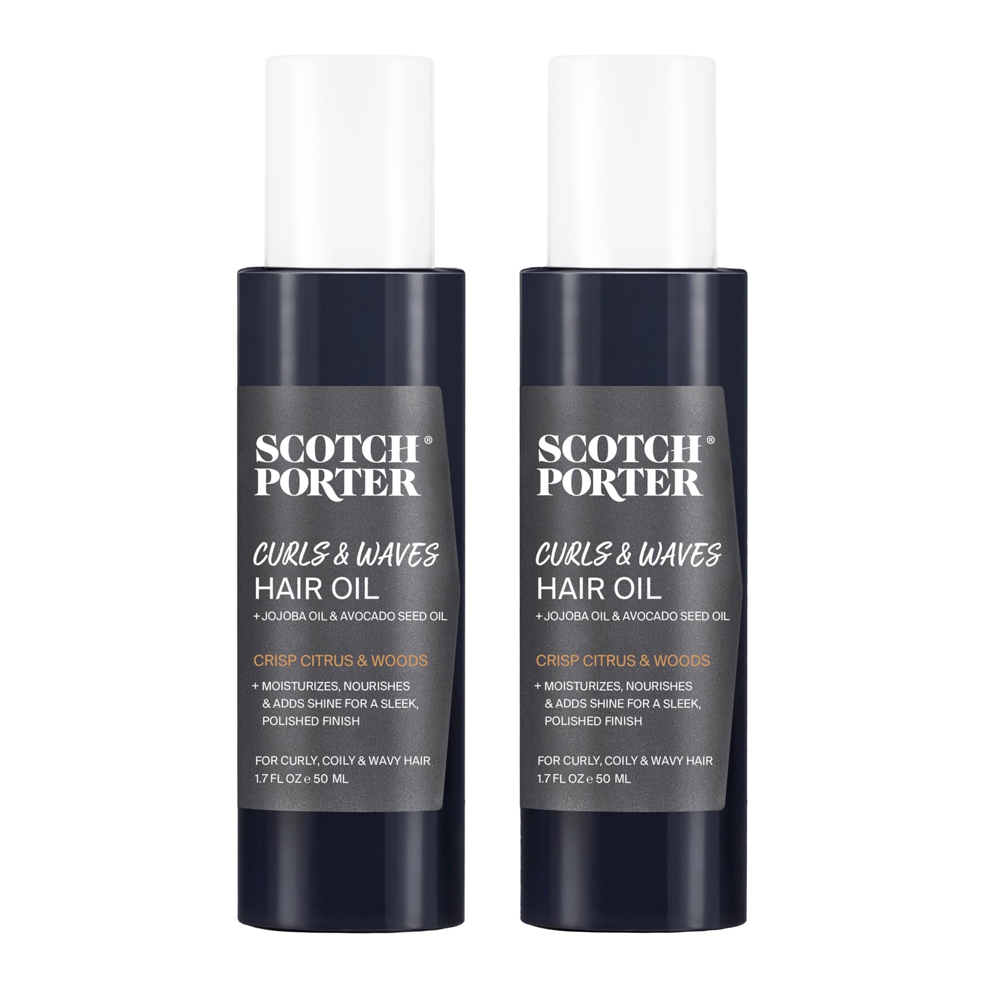Scotch Porter Curls & Waves Hair Oil for Men | Formulated with Non-Toxic Ingredients, Free of Parabens, Sulfates & Silicones | Vegan | 1.7oz – 2 Pack