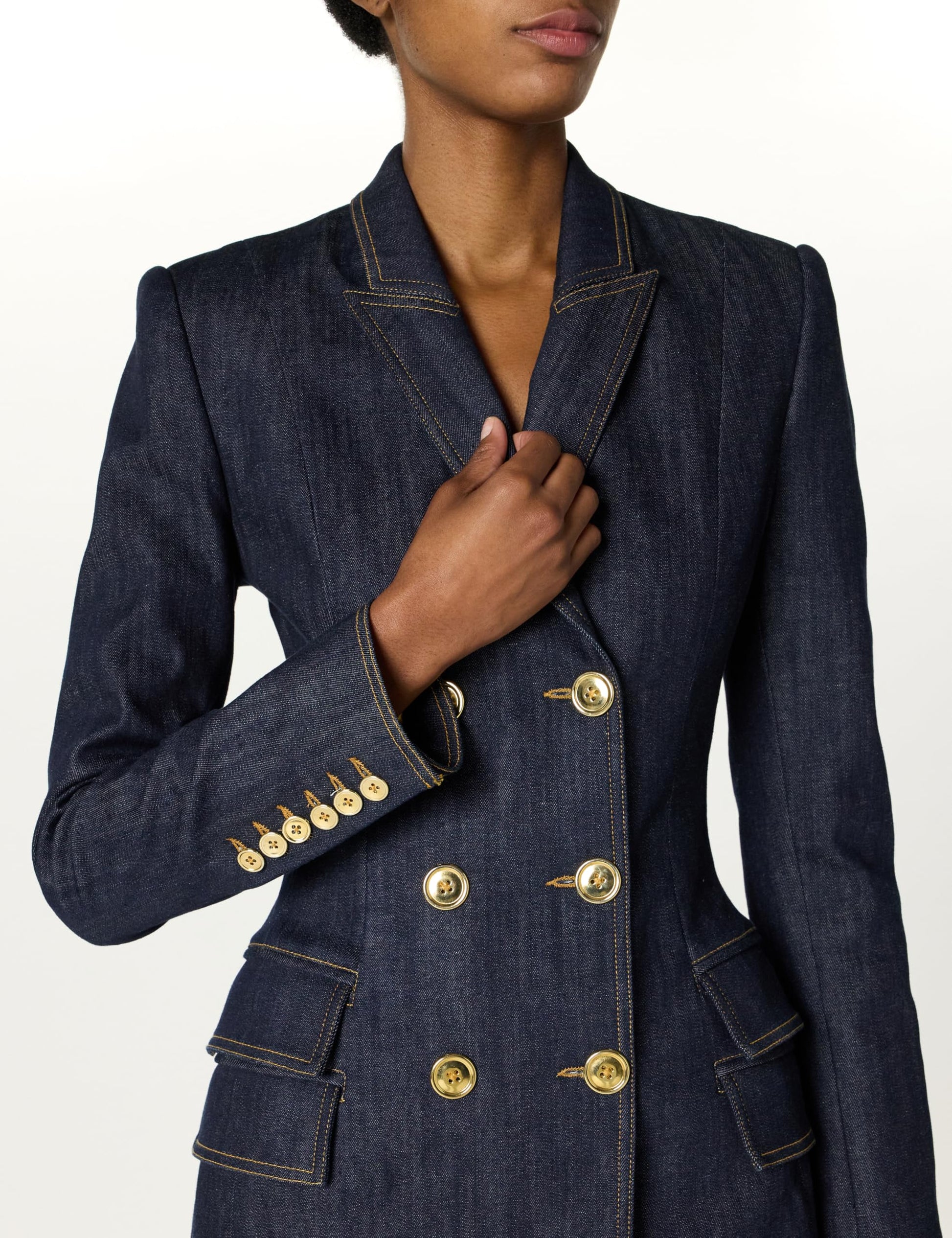 Sergio Hudson, Fitted Double Breast Jacket, 2, Dark Wash Denim