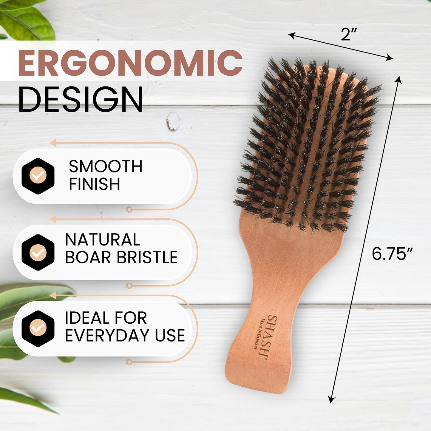 SHASH Since 1869: Handmade in Germany - The Go-To 100% Boar Bristle Hair Brush for Thin to Normal Hair | Naturally Conditions, Improves Texture, Exfoliates, and Stimulates the Scalp