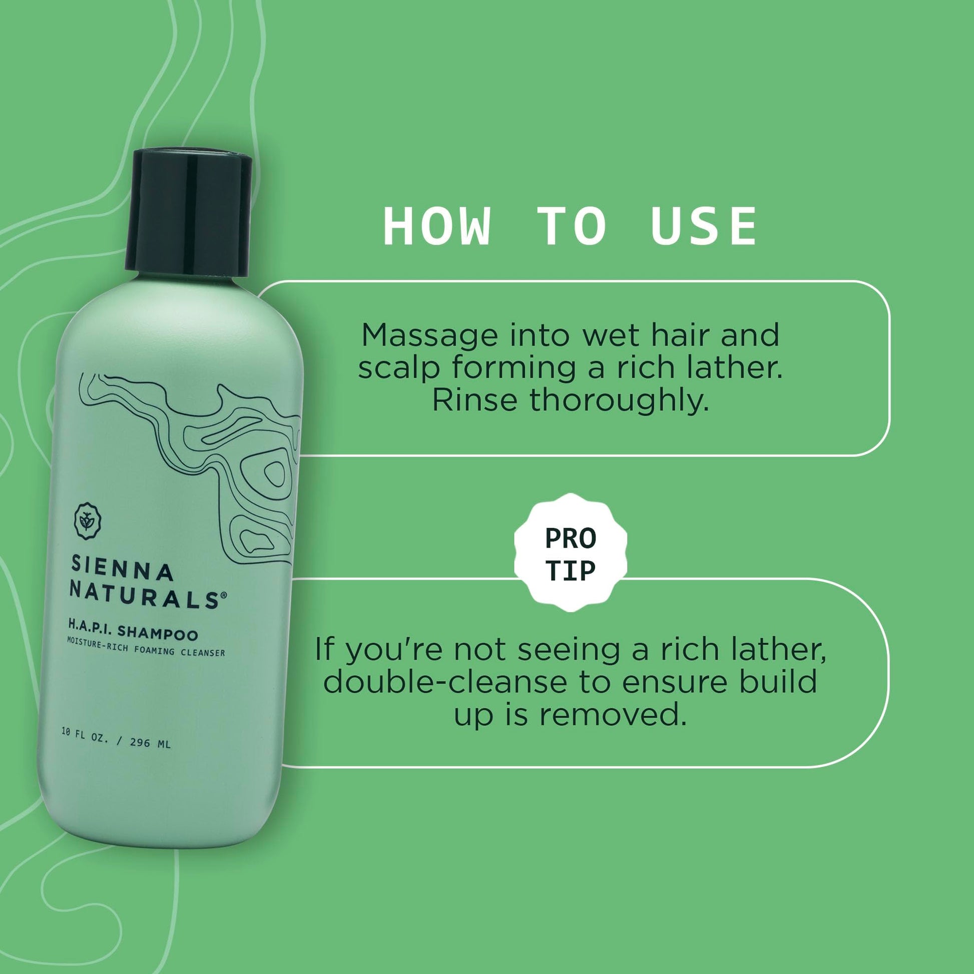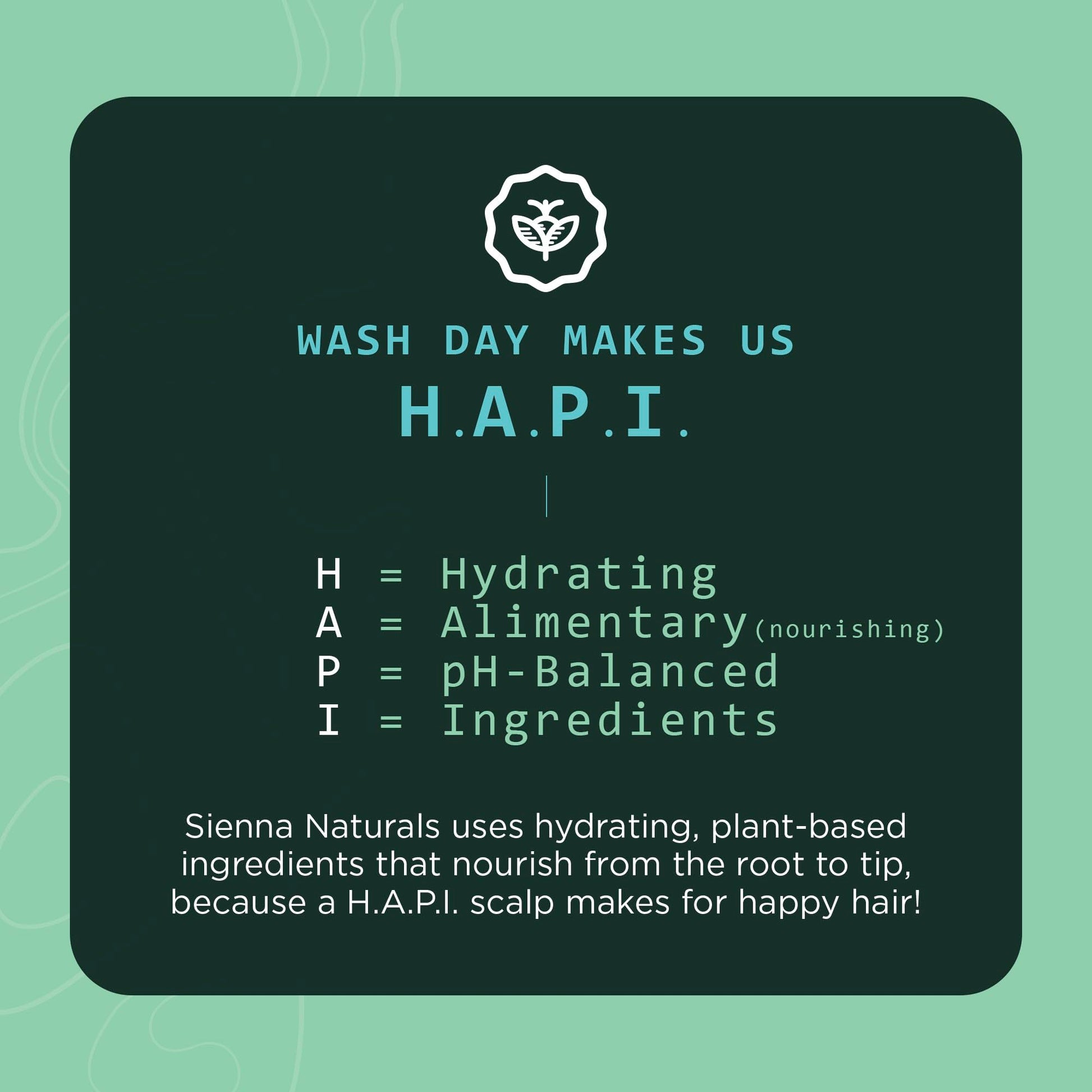 Sienna Naturals - H.A.P.I. Shampoo – Anti Frizz - Sulfate-Free, Scalp-Nourishing & Hydrating Cleanser – Gently Removes Buildup Without Stripping – pH-Balanced, Vegan & Clean Formula - 11oz