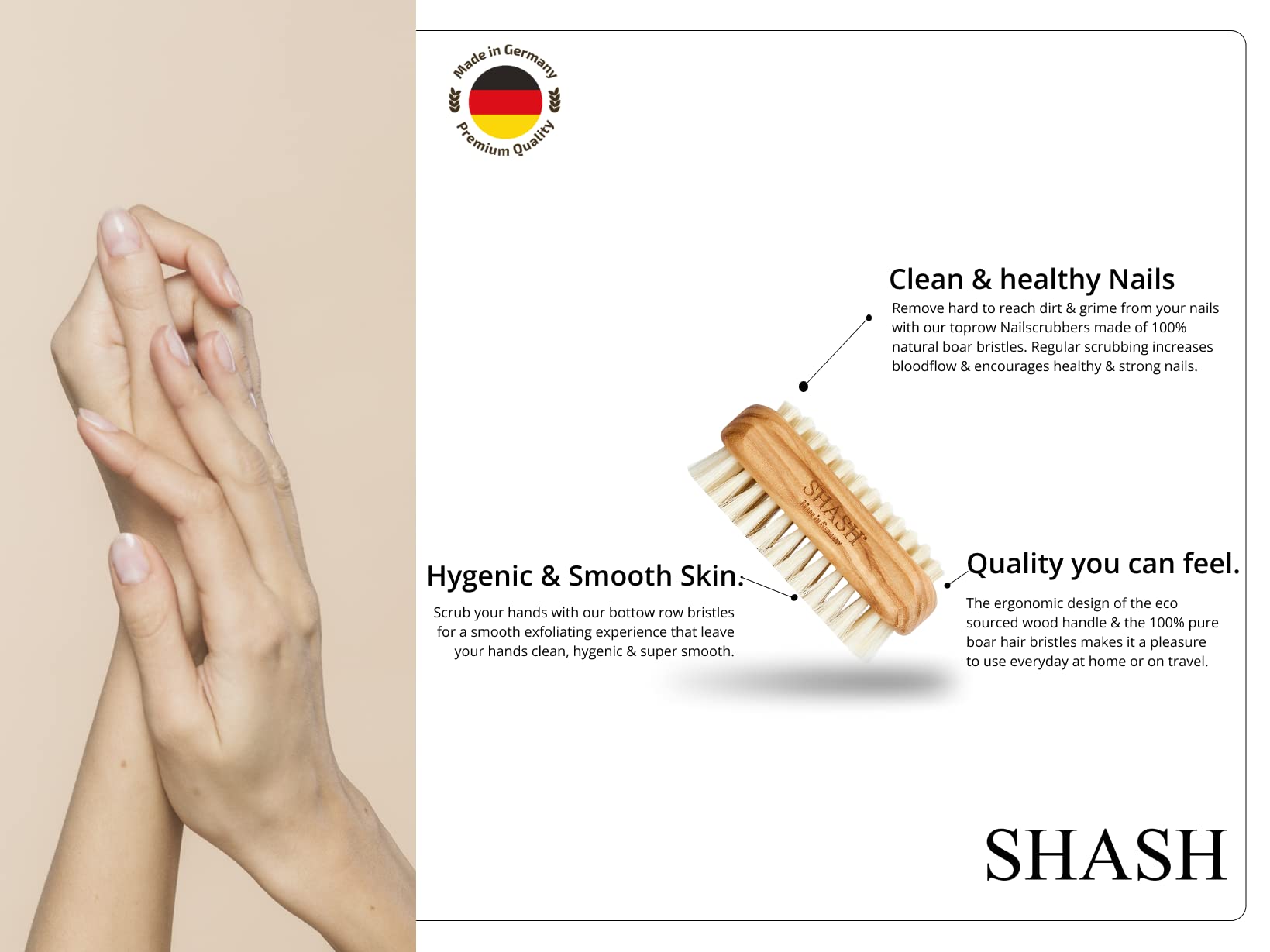 - MADE IN GERMANY: Made in Germany with natural bristles, our nail cleaning brush reflects our commitment to world-class craftsmanship!