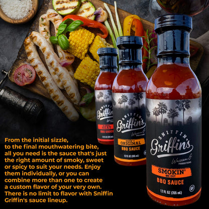 - SPICE IT UP: Choose the best combination of sauces for your table. Try Sniffin Griffin's mild: Keepin It Original, medium: Smokin' Me Out, and hot: We Bring Heat. Get the perfect level of spice with your new favorite mouth-watering BBQ sauce.