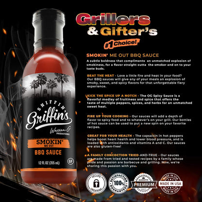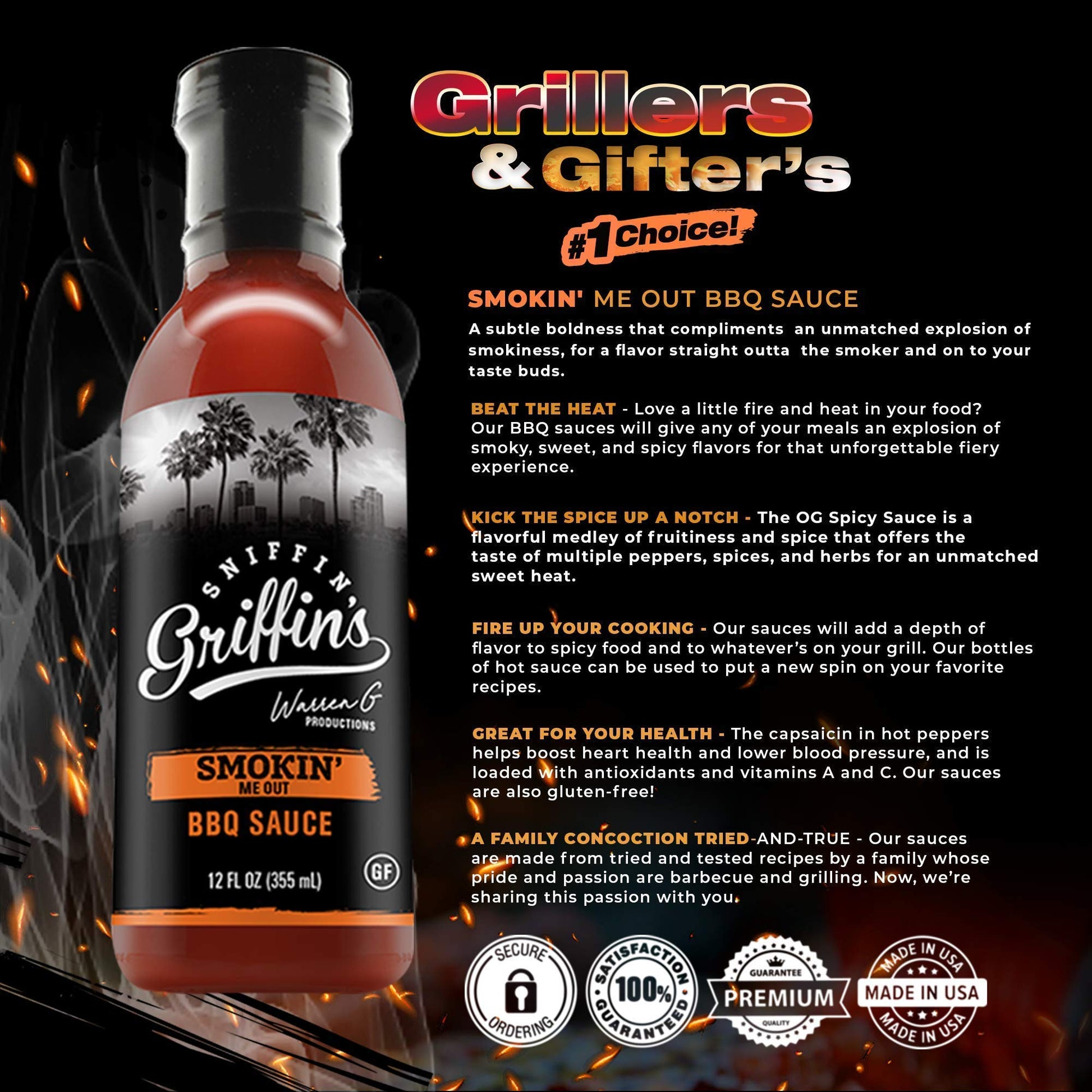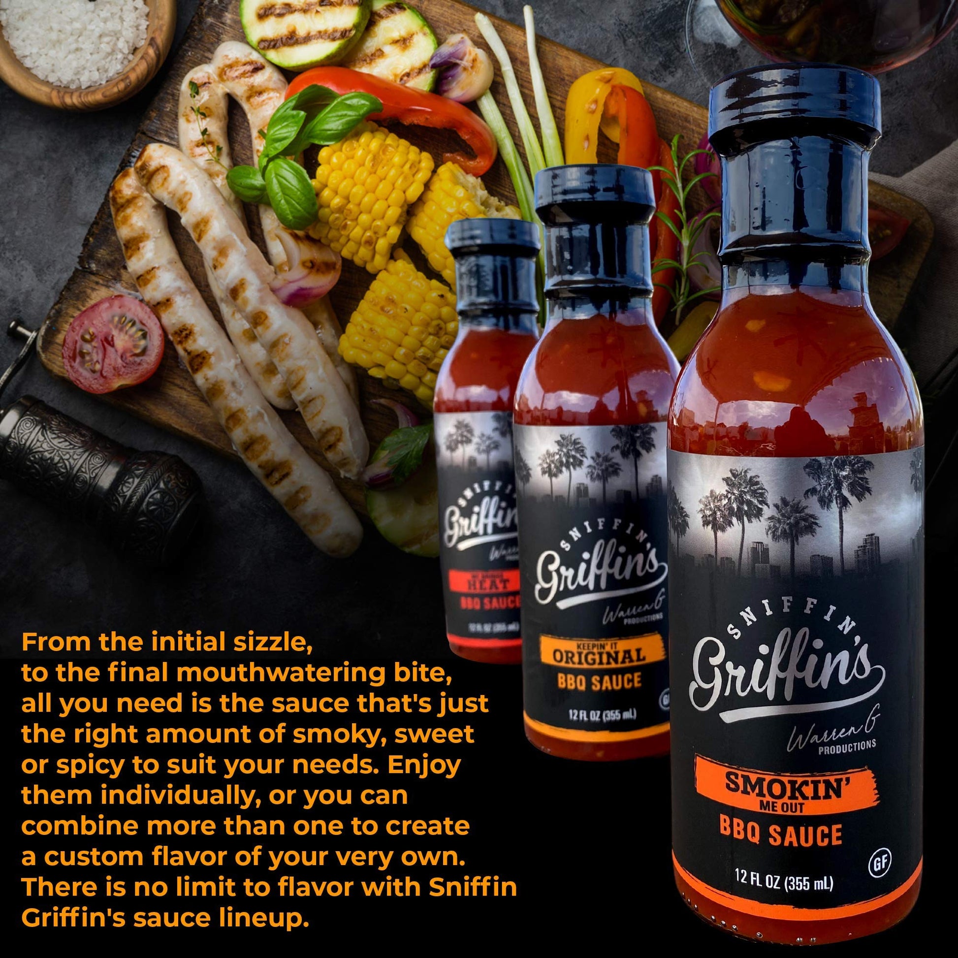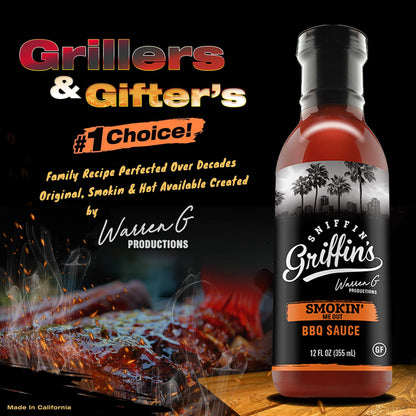 Sniffin Griffin's Smokin BBQ Sauce - Sweet Medium Barbecue - Smoked Red Pepper Chili Sauce - Tangy & Savory Flavor - Ideal for Grilling, Dipping and Marinating - Warren G's Gourmet Condiment (12fl oz)