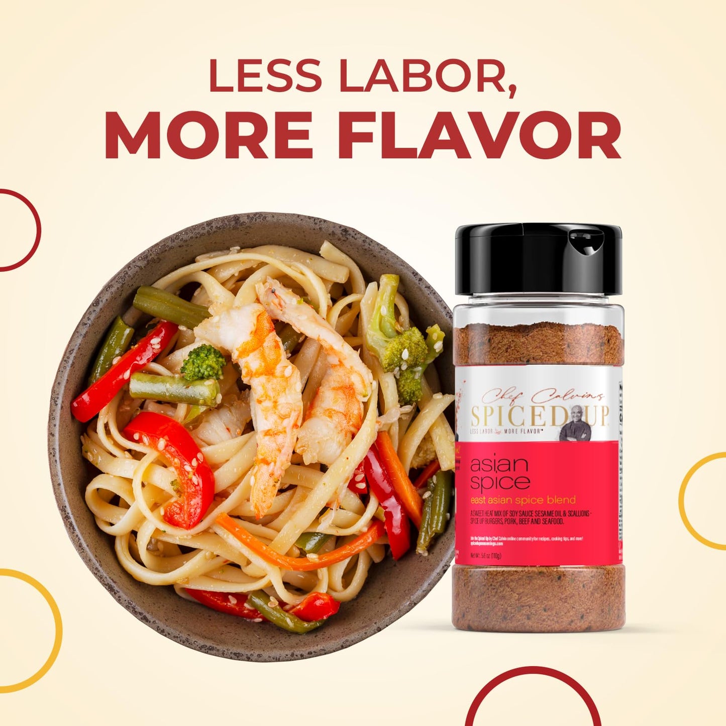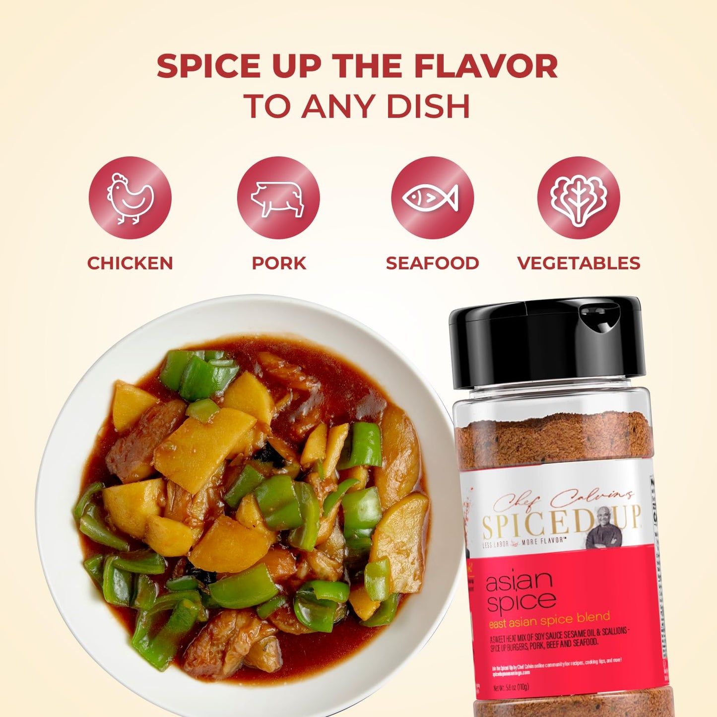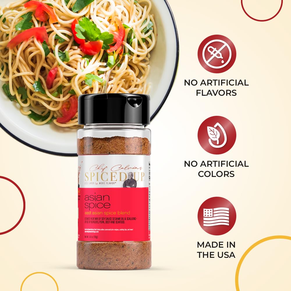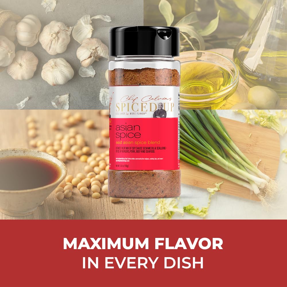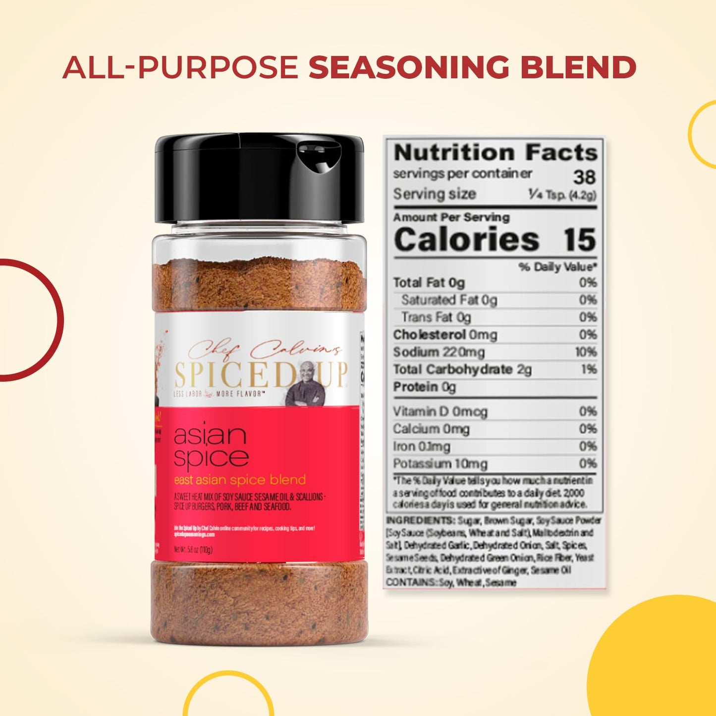 Spiced Up by Chef Calvin - All Purpose Seasoning with Natural Herbs & Spices 5.6 oz/160 g - East-Asian Style Blend for Cooking Meat, Seafood, Veggies - Soy Sauce, Sesame Oil, Citrus and Scallions