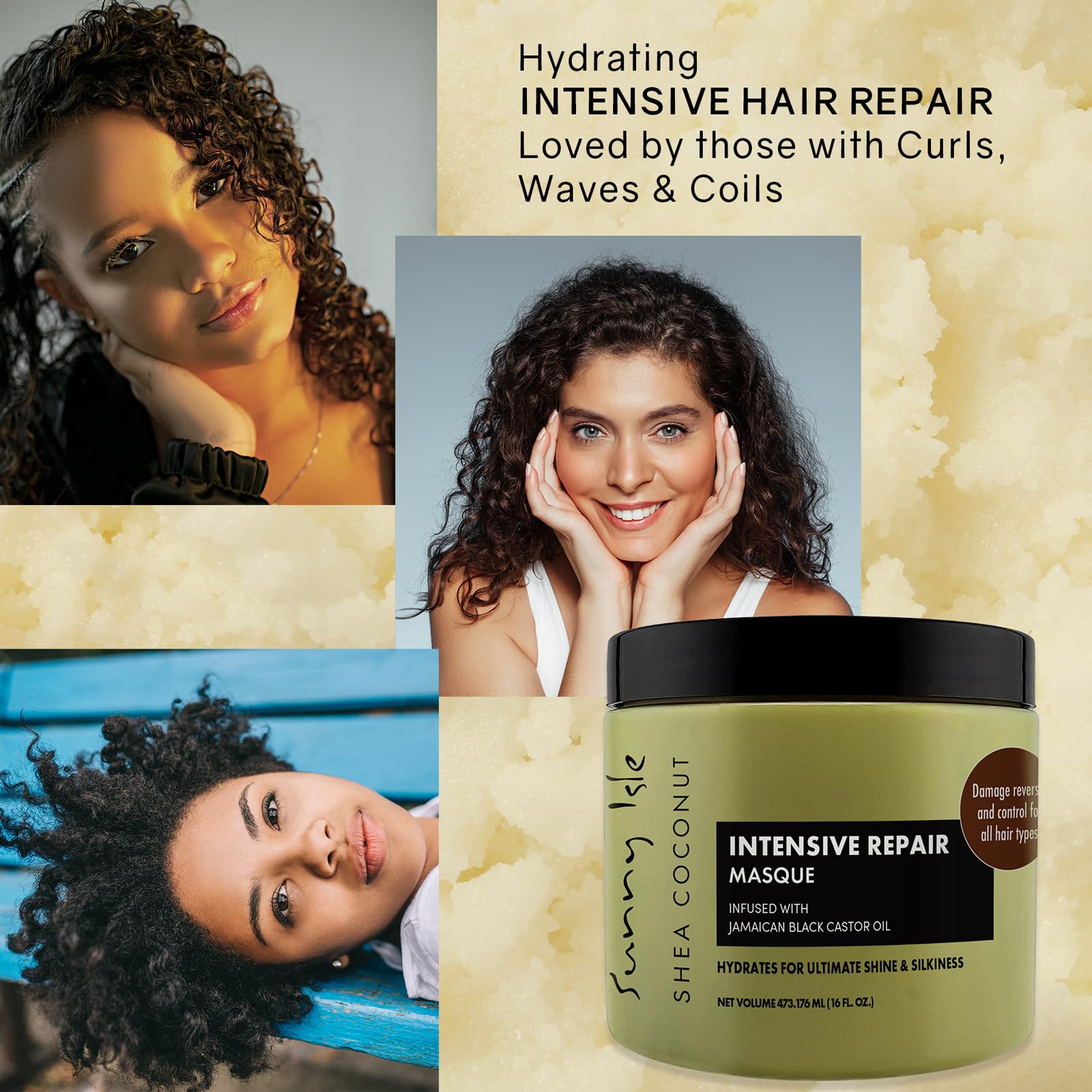 Sunny Isle Shea Coconut Intensive Repair Masque 16oz | Jamaican Black Castor Oil Infused | Deeply Conditions, Repairs, Hydrates, Strengthens Damaged Hair | Adds Shine & Body