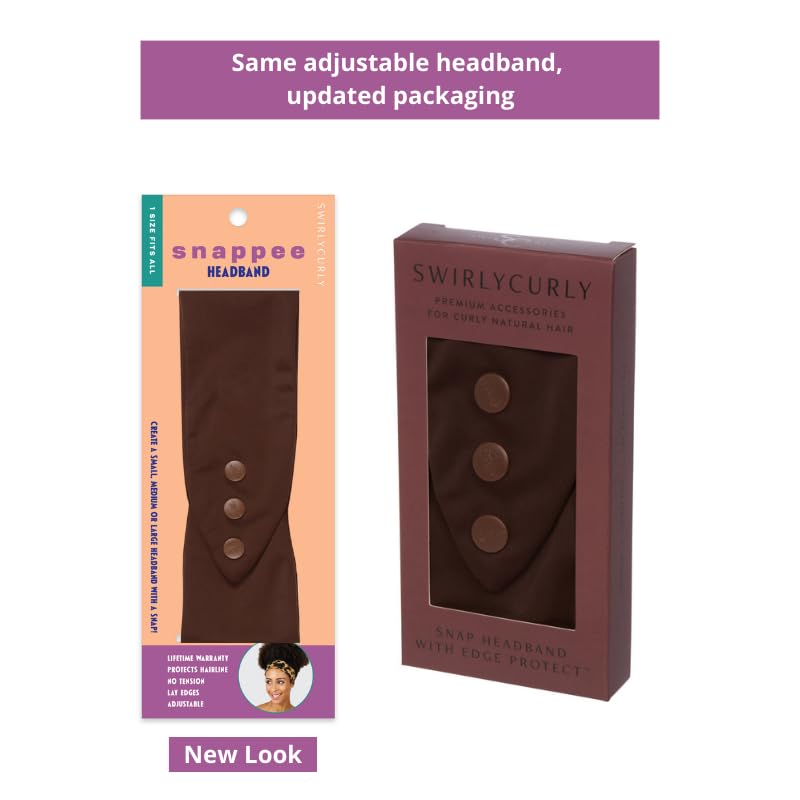 SWIRLYCURLY Women’s Fashion Headband for Natural, Curly Hair | No-Slip, 3-Snap, Adjustable, Washable, Turban Headwrap (Brown)