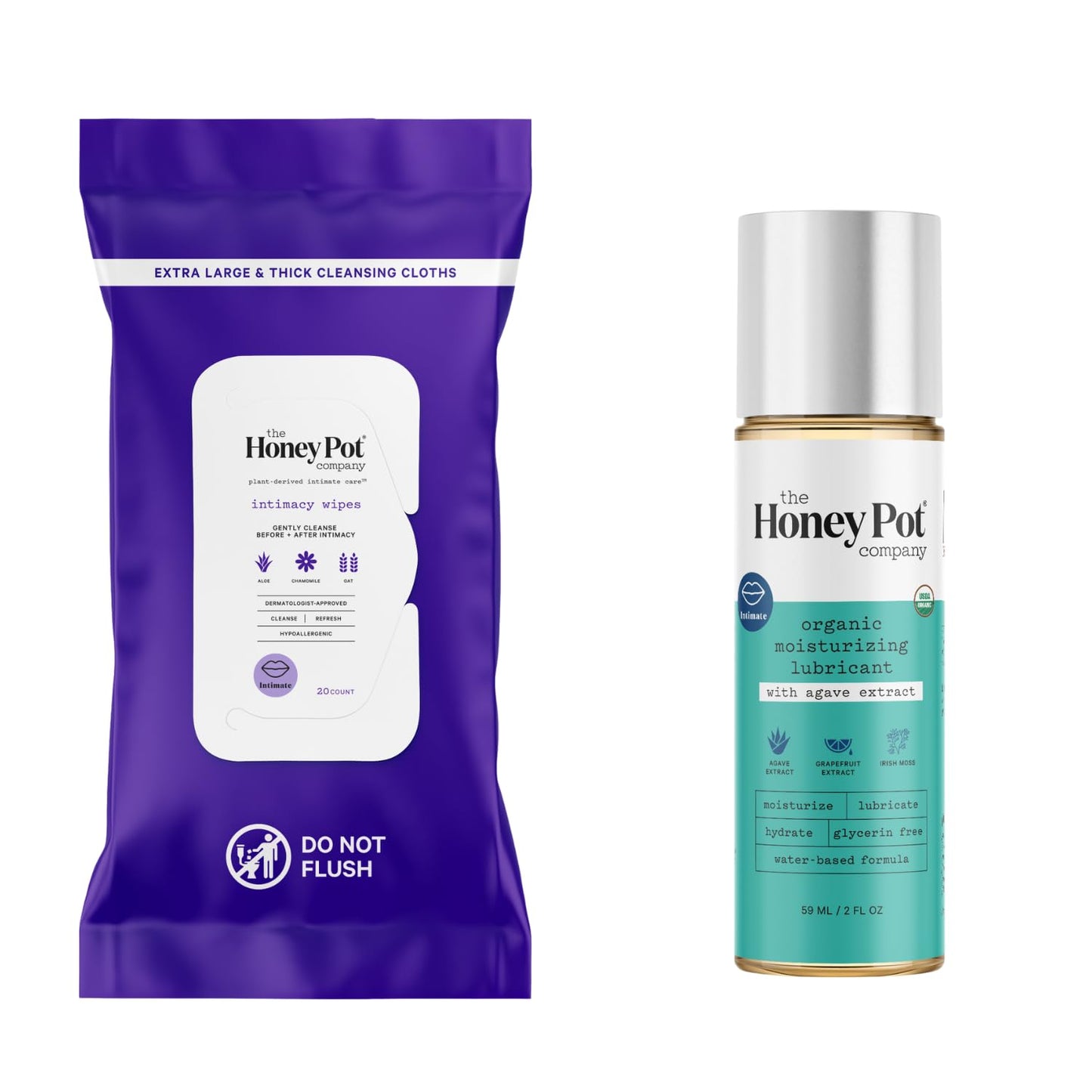 The Honey Pot Company - Intimacy Cleansing Wipes & Organic Lube w/Agave Extract Bundle - pH Balancing & Paraben Free - Feminine Products - Perfect for Women and Couples. Lubricants for Privacy