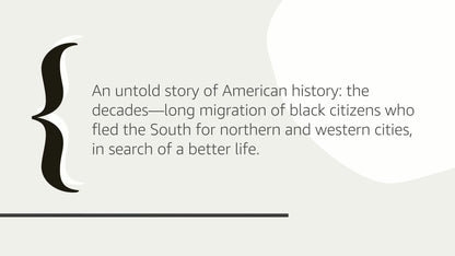 In this beautifully written masterwork, Pulitzer Prize–winning author Isabel Wilkerson presents a definitive and dramatic account of one of the great untold stories of American history: the Great Migration of six million Black citizens who fled the South for the North and West in search of a better life, from World War I to 1970.