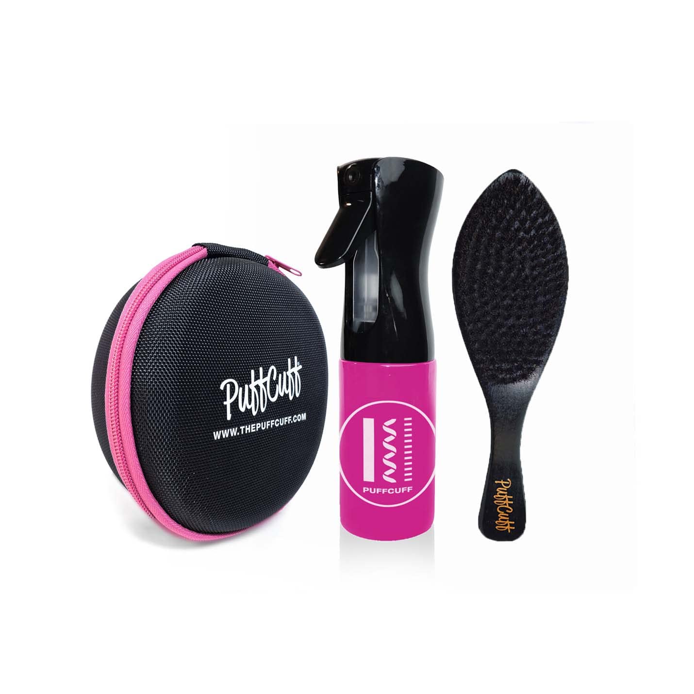 Details: The PuffCuff SideKick Bundle is great for those who need to take their curl products and accessories on-the-go. The PuffCuff Round Hardcover Carrying Case is made of a rigid material to protect the contents inside and features a mesh net lining to help organize smaller accessories. Also contains a Refillable Misting Spray Bottle which features a 360-degree, continuous misting mechanism for an even spray that's free of propellants and chemicals.